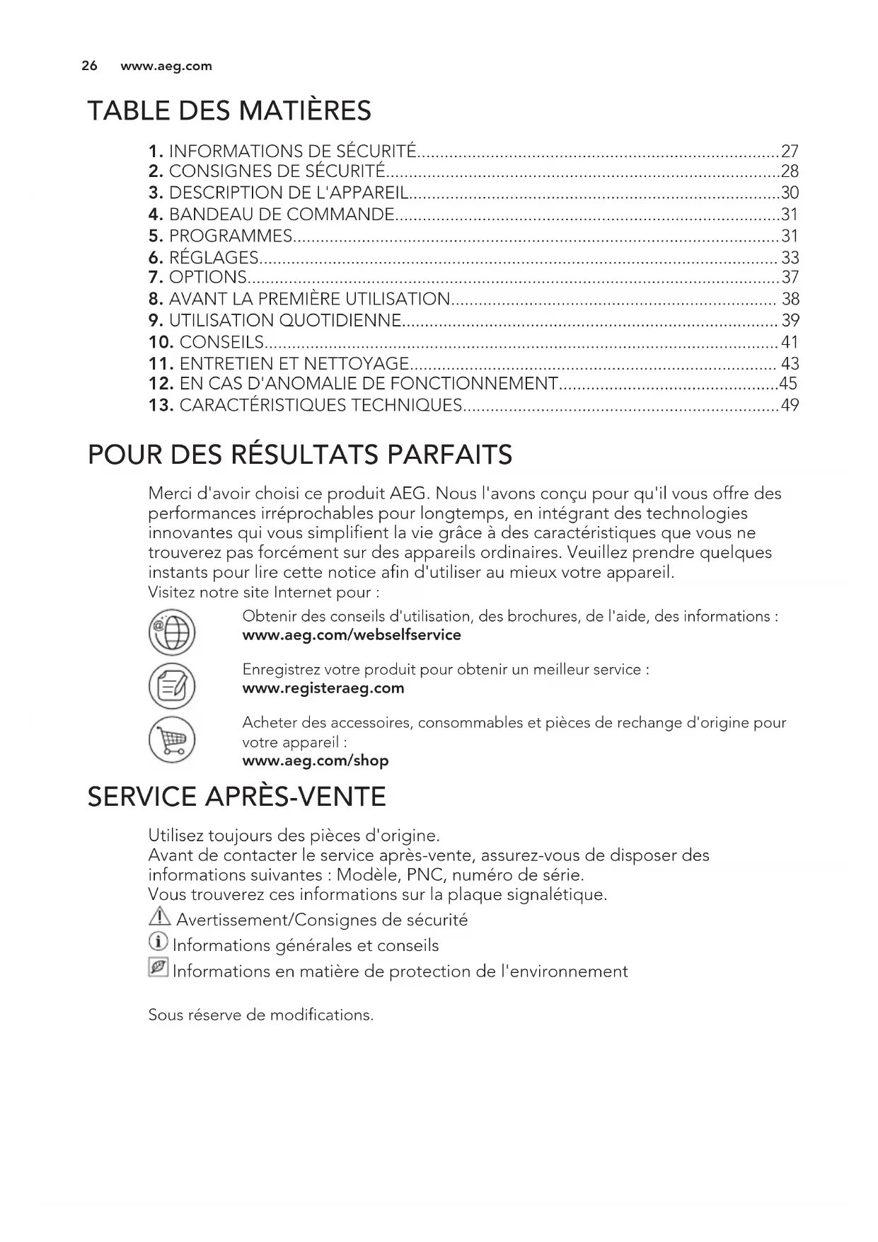 POUR DES RÉSULTATS PARFAITS Merci d'avoir choisi ce produit AEG. Nous l'avons conçu pour qu'il vous offre des