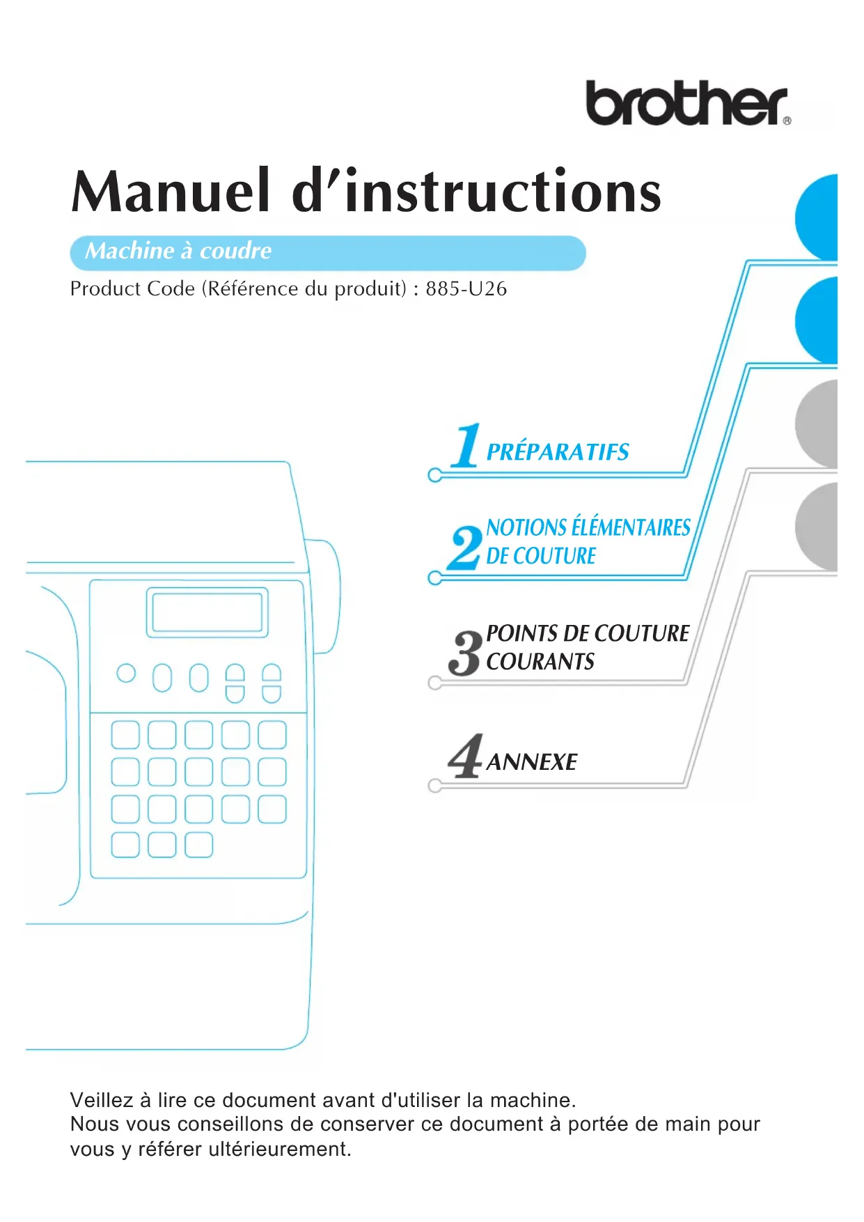 PRÉPARATIFS NOTIONS ÉLÉMENTAIRES DE COUTURE POINTS DE COUTURE COURANTS ANNEXE French885-U26Printed in China Machine à coudre
