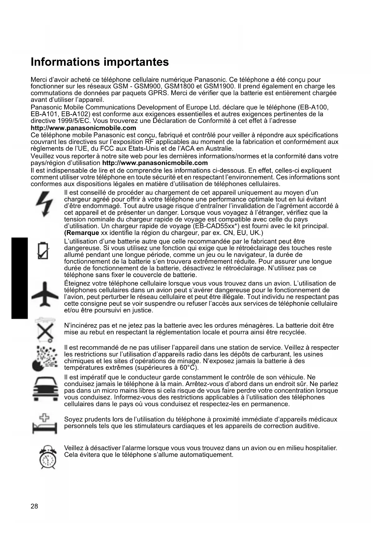 Veuillez you reporter a notre site web pour les dernières informations/normes et la conformite dans voire pays/region d'utilisation http://www.panasonicmobile.com