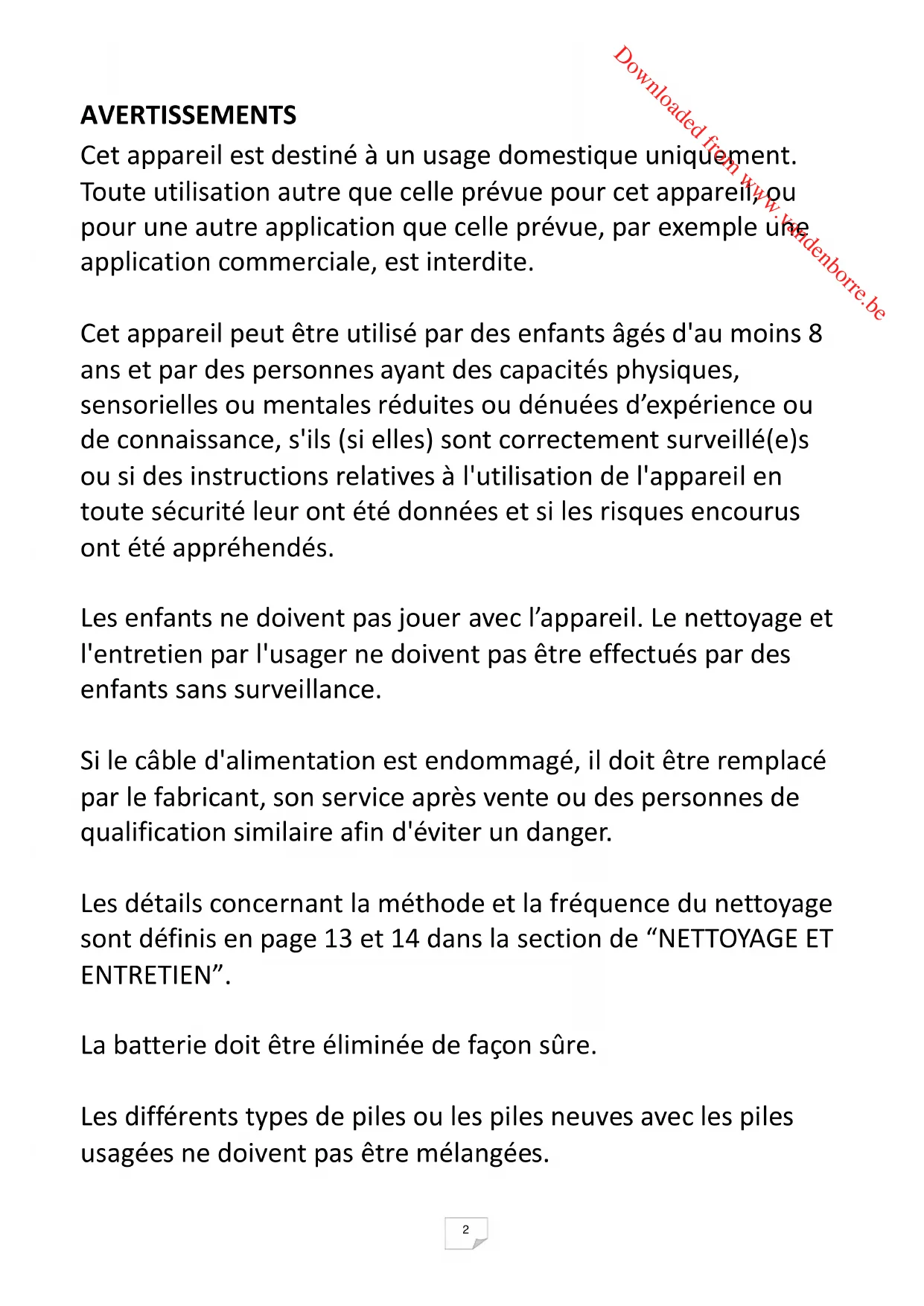 Lesdifférentstypesdepilesoulespilesneuvesaveclespiles usagéesnedoiventpasêtremélangées. Downloaded from www.vandenborre.be3