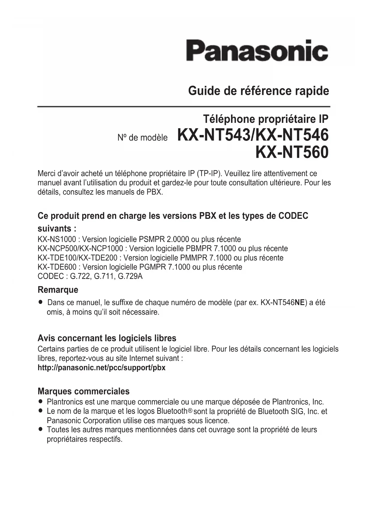 Téléchargez la notice de votre Téléphone au format PDF gratuitement ! Retrouvez votre notice KXNT543 - PANASONIC et reprennez votre appareil électronique en main. Sur cette page sont publiés tous les documents nécessaires à l'utilisation de votre appareil KXNT543 de la marque PANASONIC.