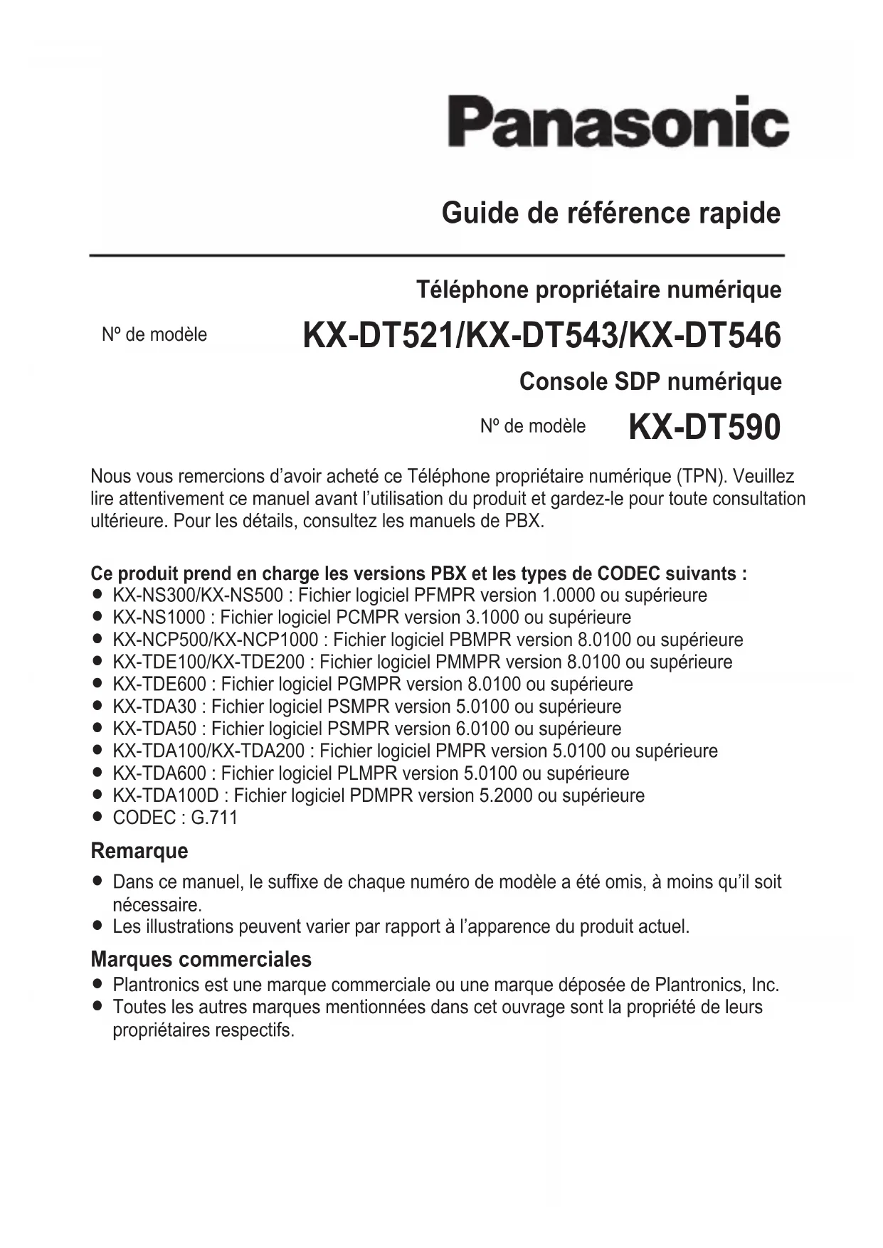 MODE D'EMPLOI KXDT590 PANASONIC