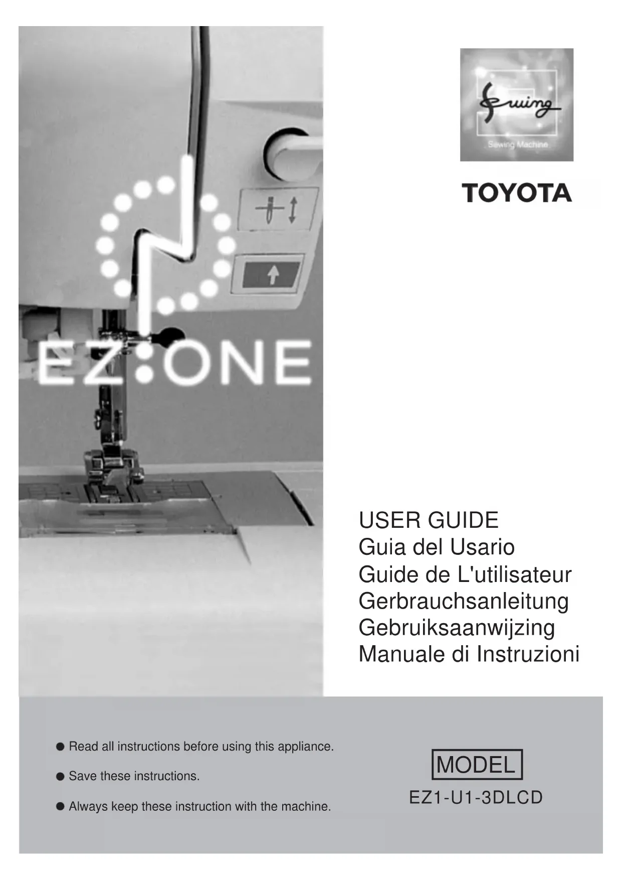 Téléchargez la notice de votre Machine à coudre au format PDF gratuitement ! Retrouvez votre notice EZ1U1 - TOYOTA et reprennez votre appareil électronique en main. Sur cette page sont publiés tous les documents nécessaires à l'utilisation de votre appareil EZ1U1 de la marque TOYOTA.