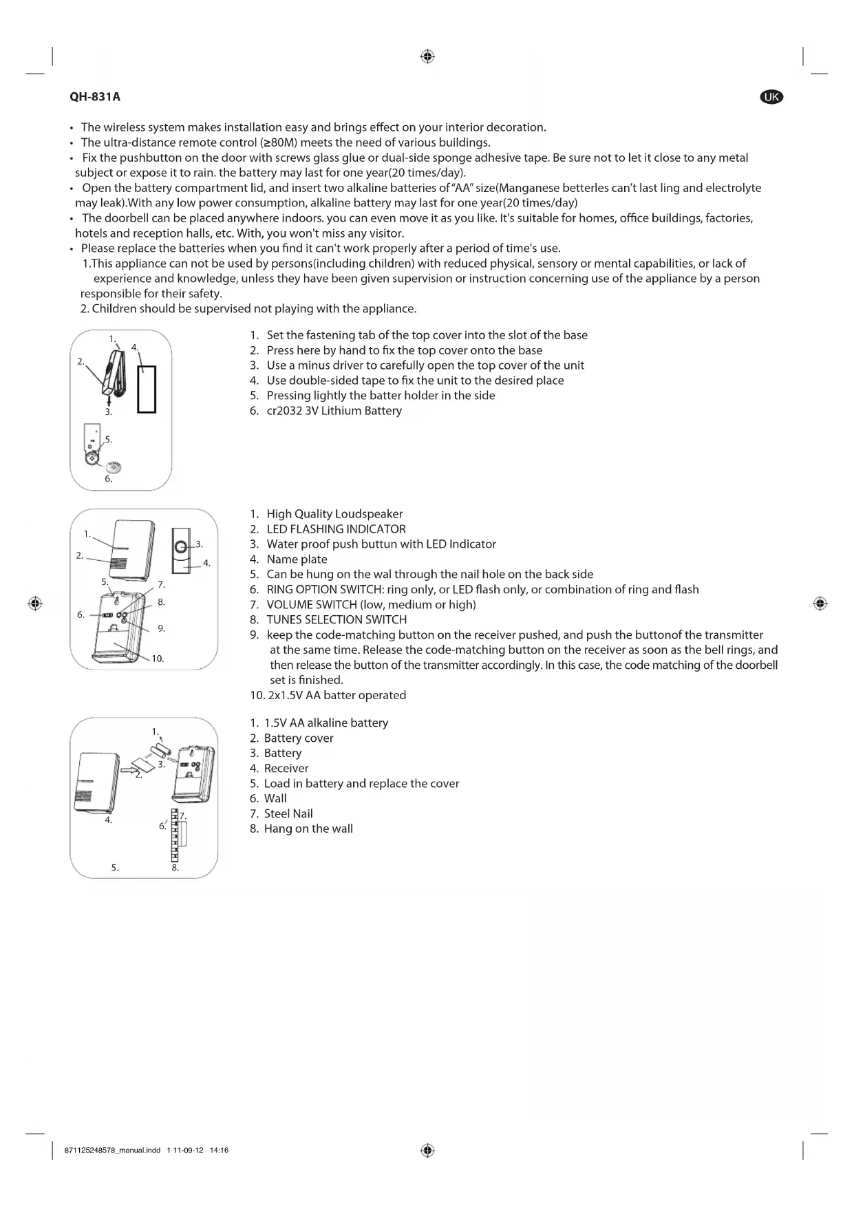 QH831A - Sonnette de portes GRUNDIG - Notice d'utilisation et mode d'emploi gratuit