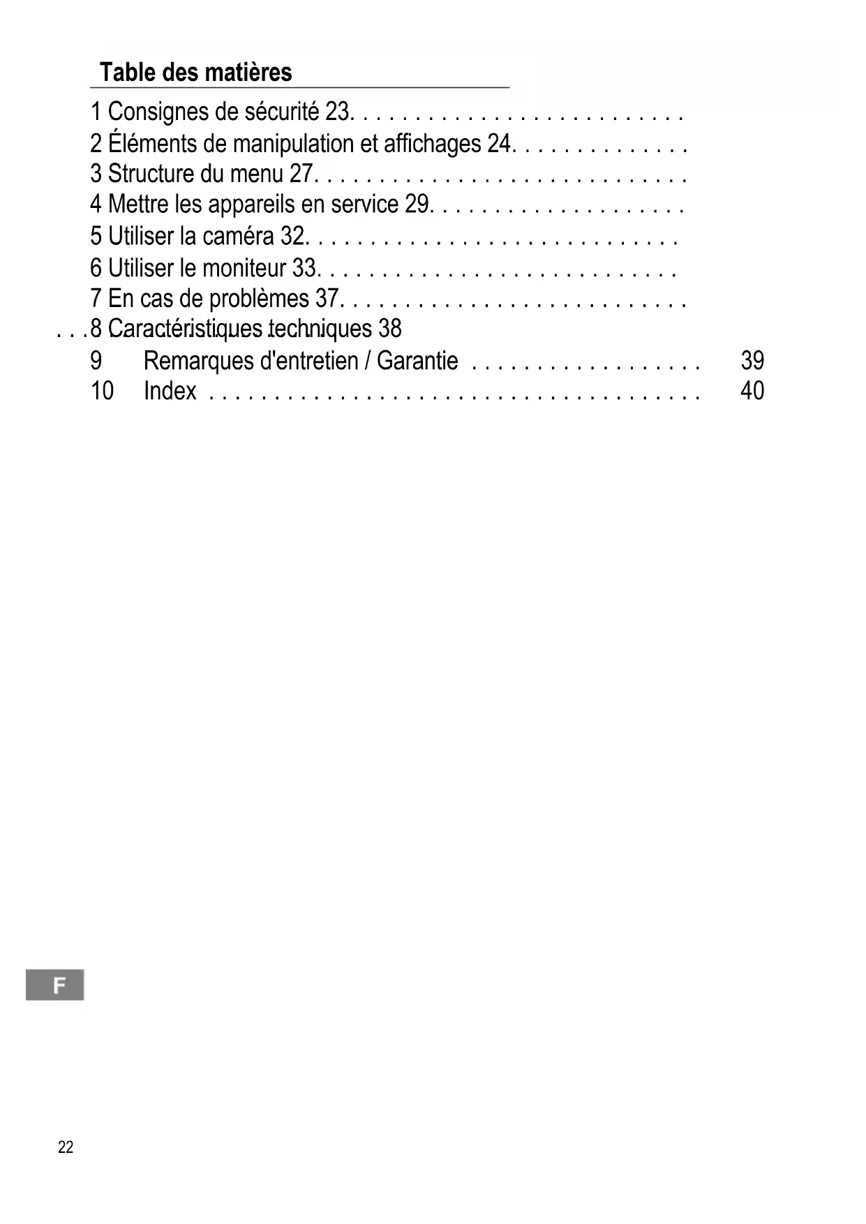 9 Remarques d'entretien / Garantie 39