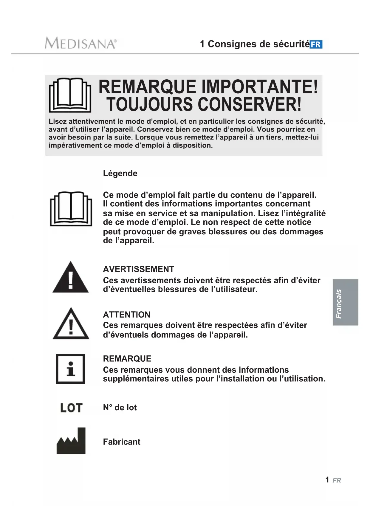 1 Consignes de sécurité 1 FR