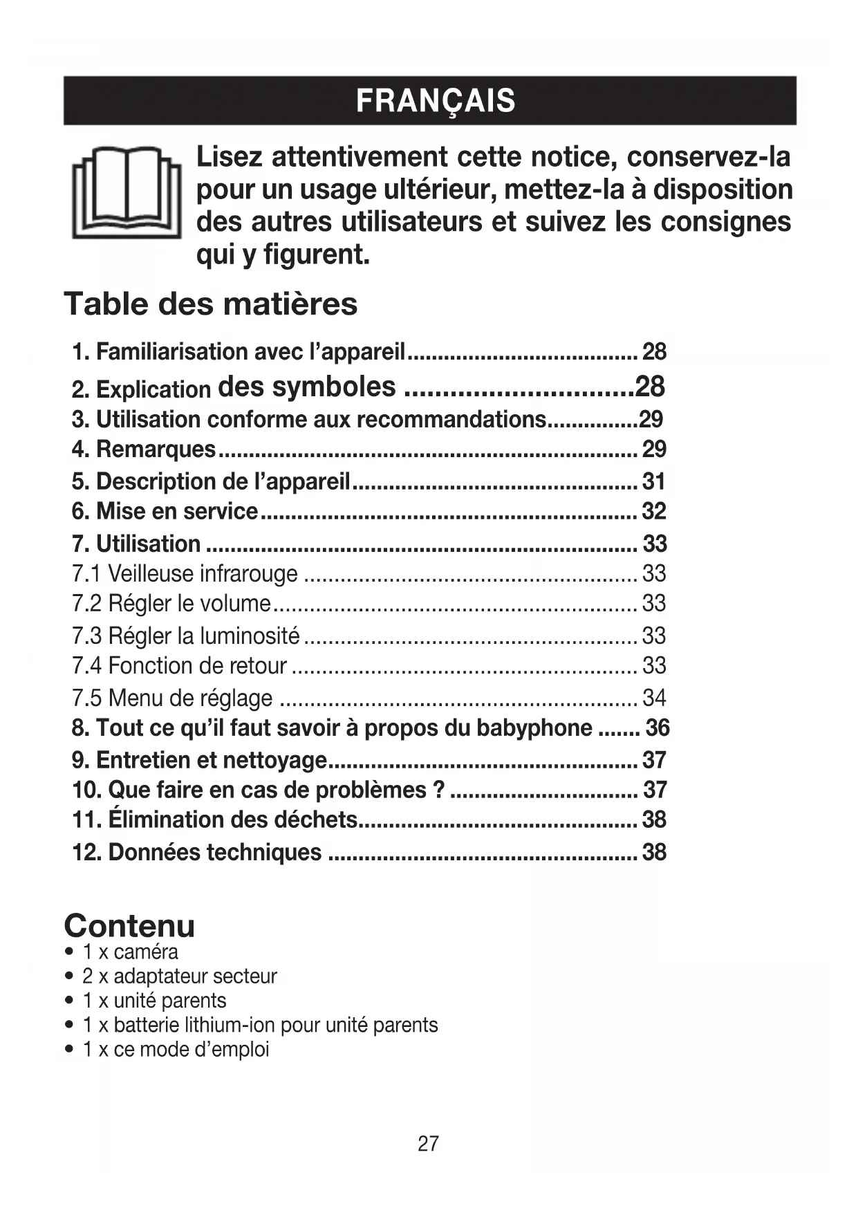 8. Tout ce qu’il faut savoir à propos du babyphone ....... 36