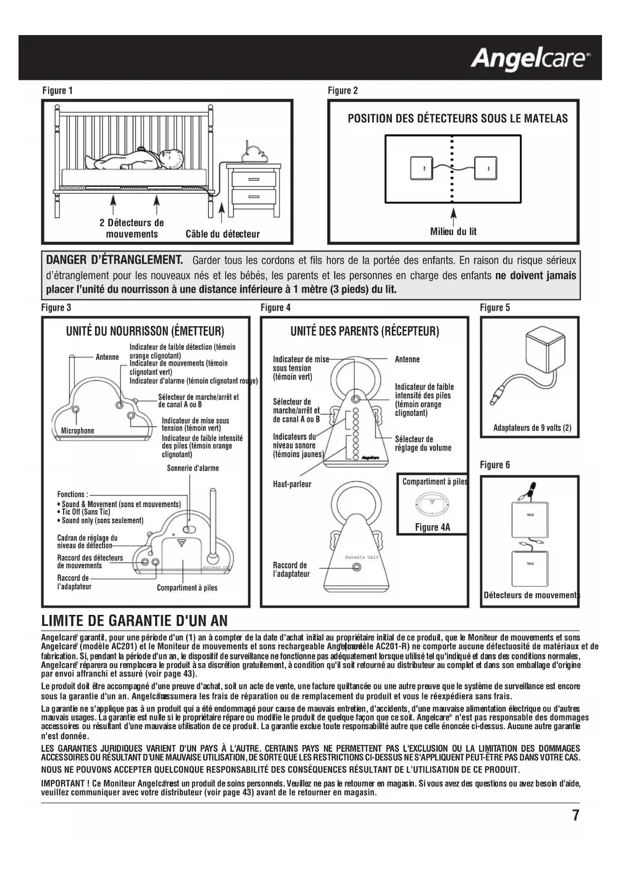 (modèle AC201-R) ne comporte aucune défectuosité de matériaux et de fabrication. Si, pendant la période d'un an, le dispositif de surveillance ne fonctionne pas adéquatement lorsque utilisé tel qu'indiqué et dans des conditions normales, Angelcare