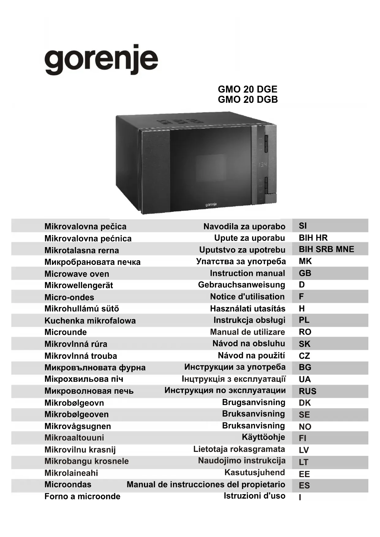 GMO 20D - Four à micro-ondes GORENJE - Notice d'utilisation et mode d'emploi gratuit