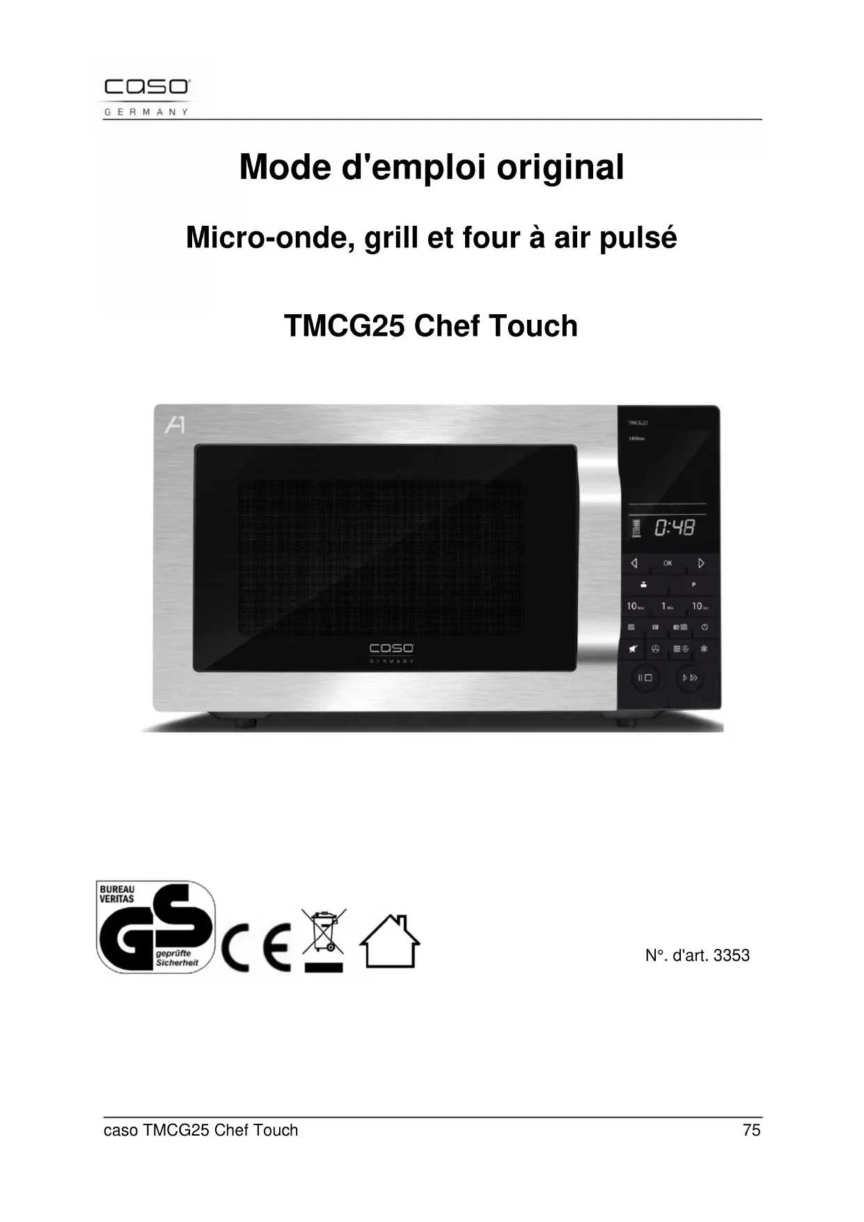 TMCG25 Chef Touch - Four à micro-ondes CASO - Notice d'utilisation et mode d'emploi gratuit