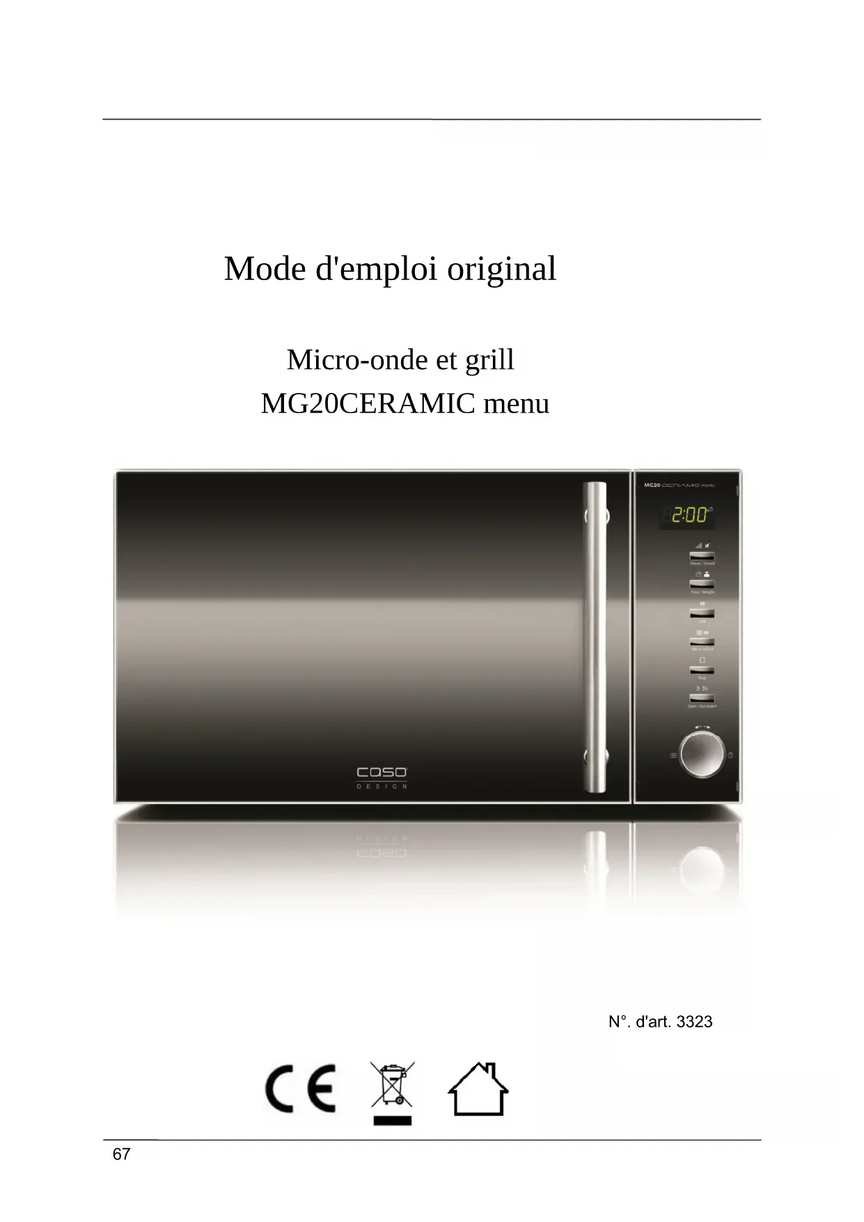 MG20 Ceramic menu - Four à micro-ondes CASO - Notice d'utilisation et mode d'emploi gratuit