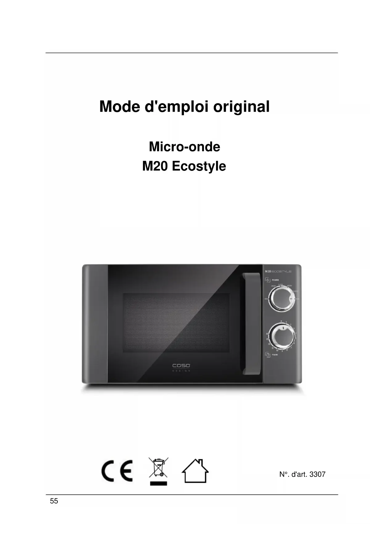 M20 Ecostyle - Four à micro-ondes CASO - Notice d'utilisation et mode d'emploi gratuit