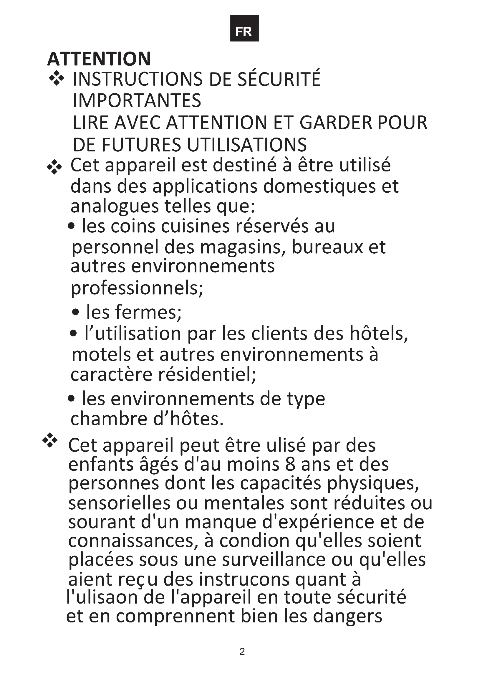 Cet appareil est destiné à être utilisé dans des applications domestiques et analogues telles que: