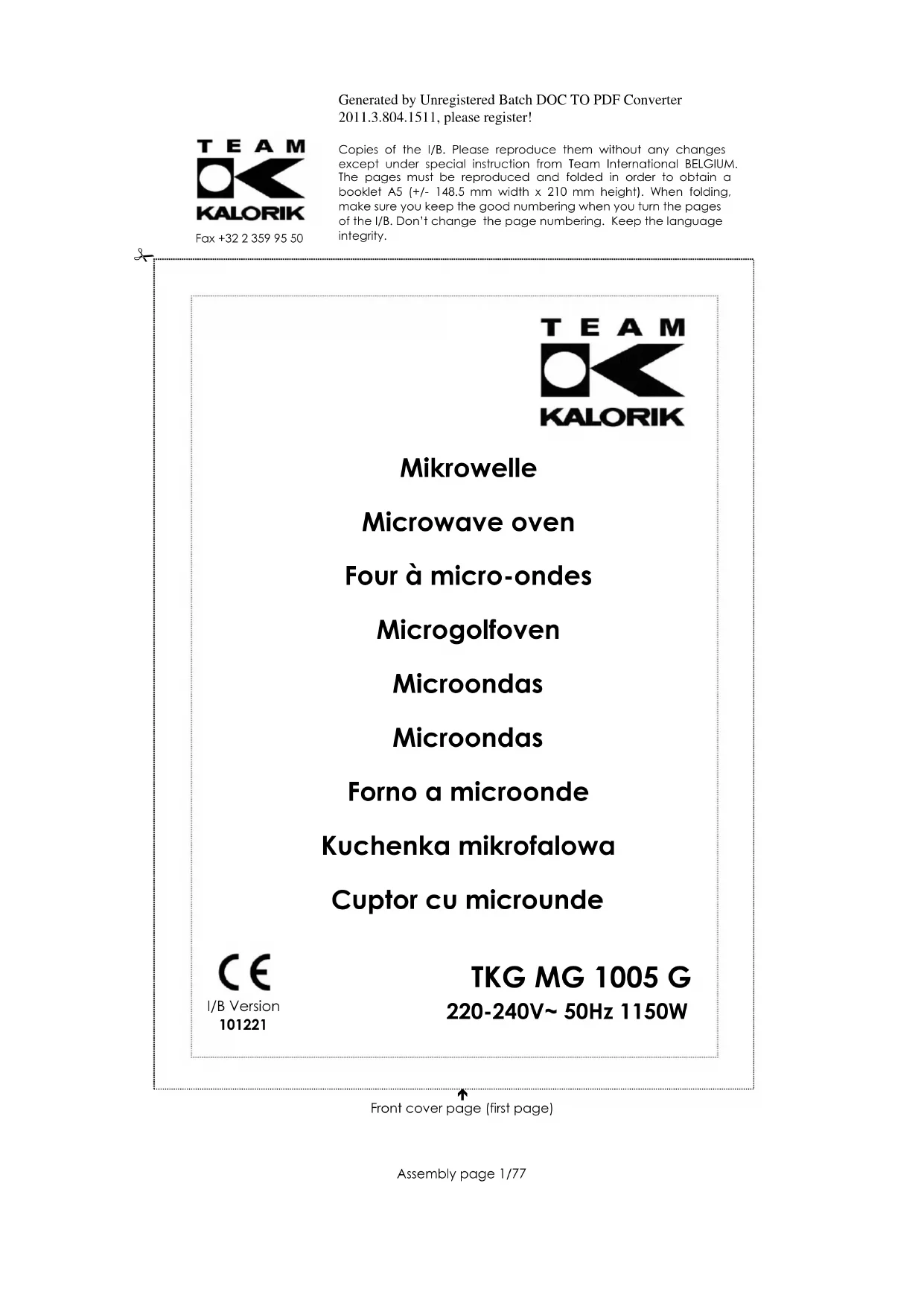 Téléchargez la notice de votre Four à micro-ondes au format PDF gratuitement ! Retrouvez votre notice TKG MG 1005 G - KALORIK et reprennez votre appareil électronique en main. Sur cette page sont publiés tous les documents nécessaires à l'utilisation de votre appareil TKG MG 1005 G de la marque KALORIK.