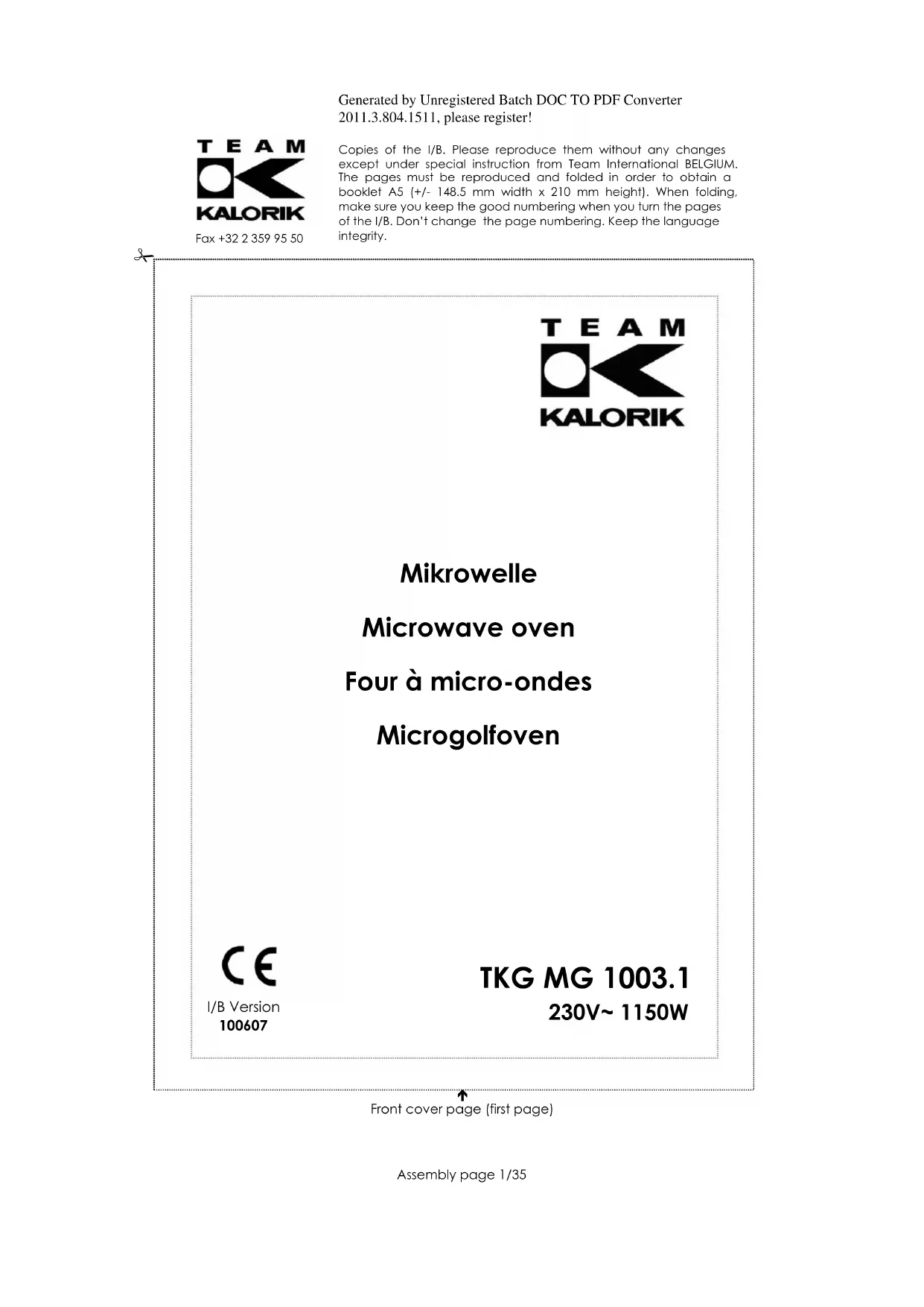 TKG MG 1003.1 - Four à micro-ondes KALORIK - Notice d'utilisation et mode d'emploi gratuit