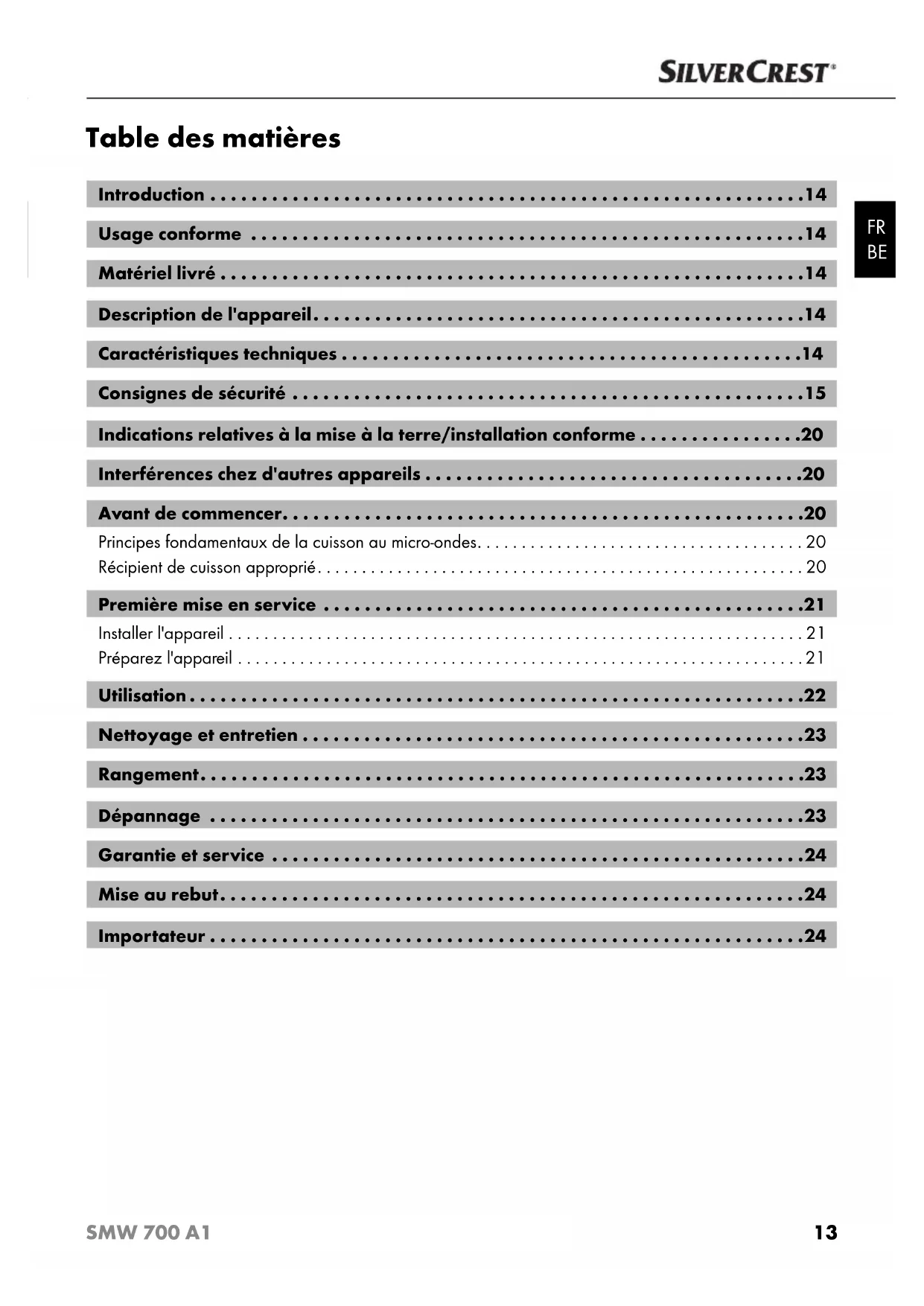 Retrouvez gratuitement la notice de l'appareil SMW 700 A1 SILVERCREST au format PDF.