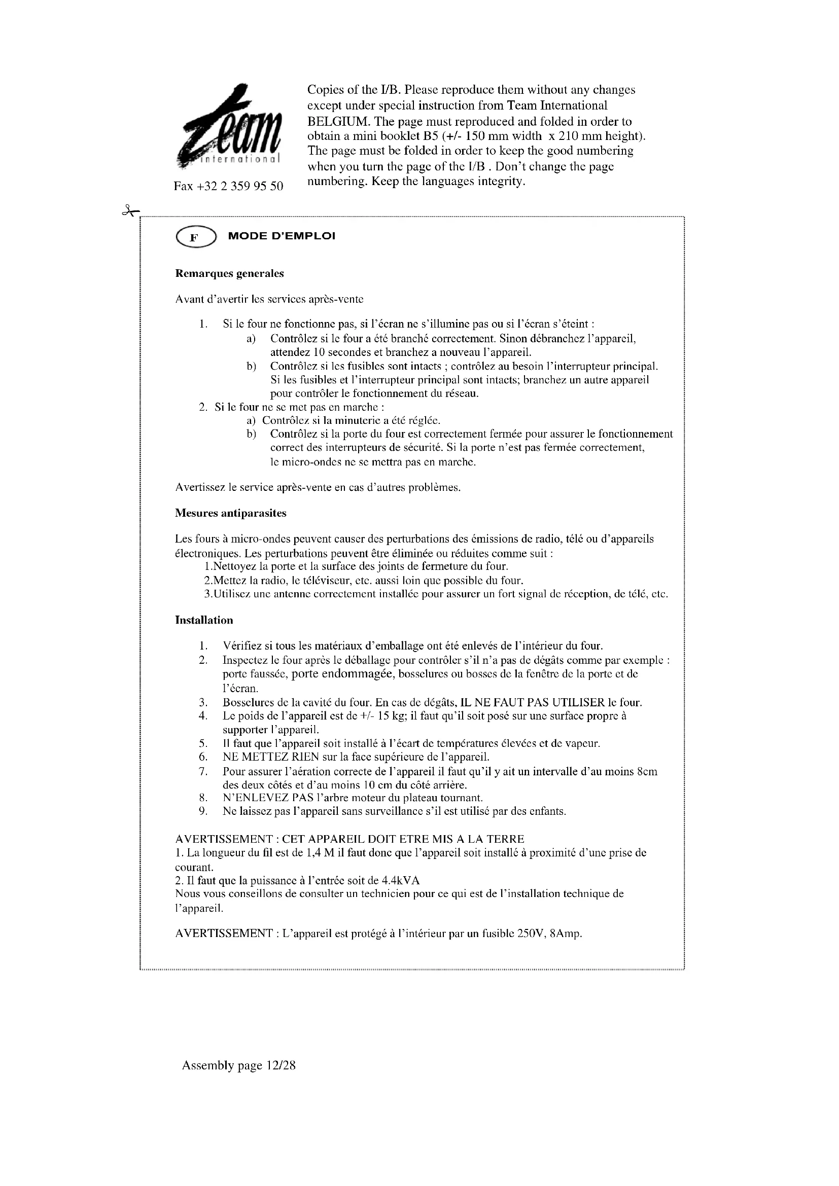 MW 7 - Four à micro-ondes TEAM - Notice d'utilisation et mode d'emploi gratuit