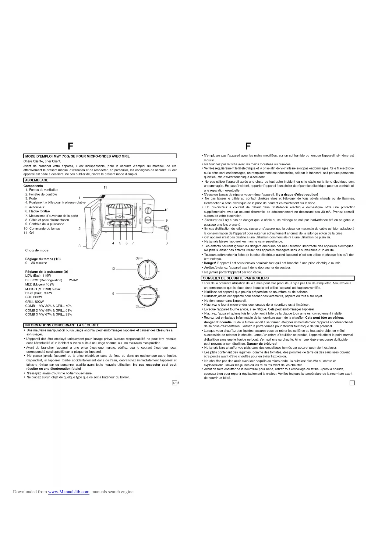 Retrouvez gratuitement la notice de l'appareil MW 170 G ELTA au format PDF.