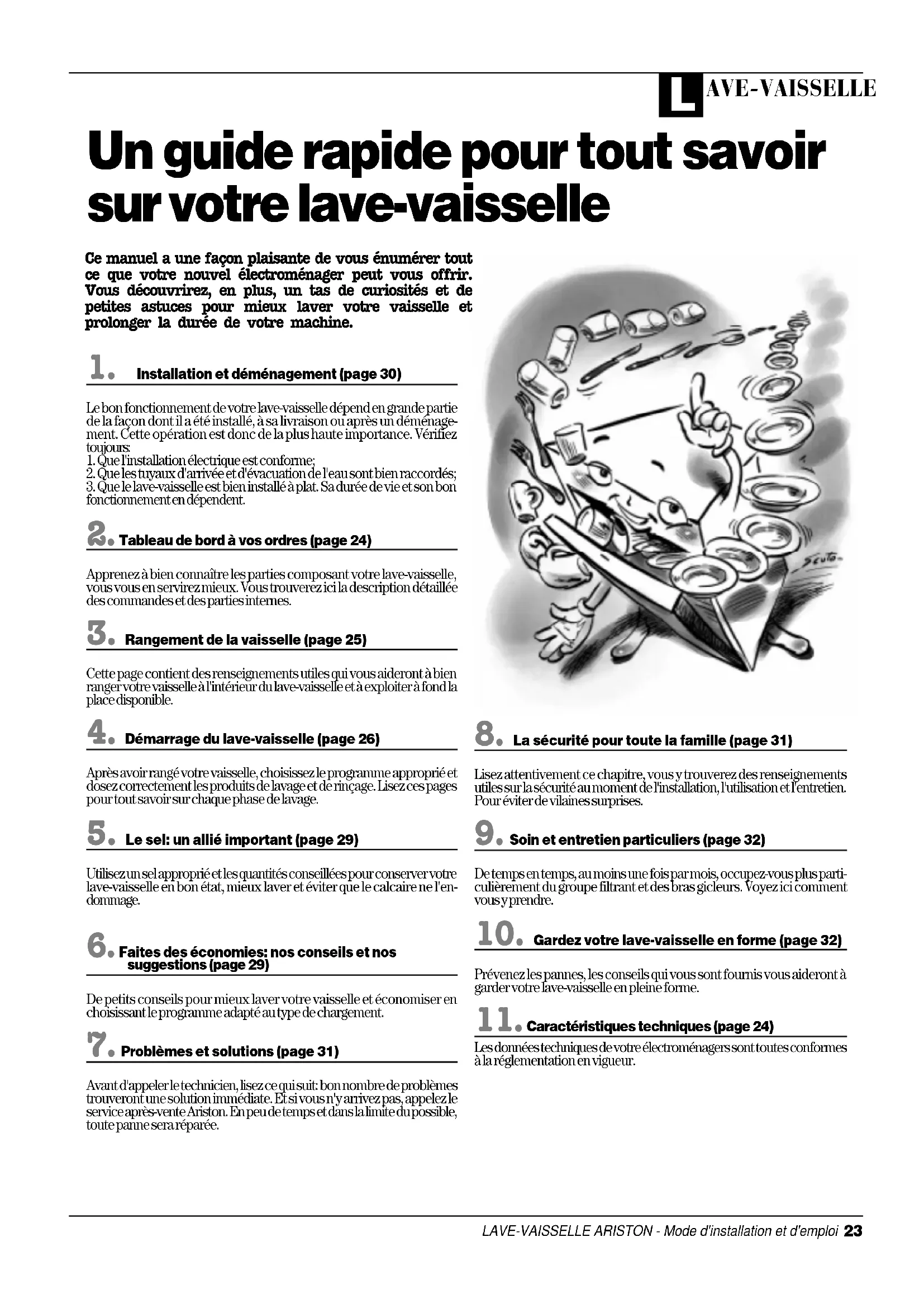 AVE-VAISSELLE Ce manuel a une façon plaisante de vous énumérer tout ce que votre nouvel électroménager peut vous offrir. Vous découvrirez, en plus, un tas de curiosités et de petites astuces pour mieux laver votre vaisselle et prolonger la durée de votre machine.