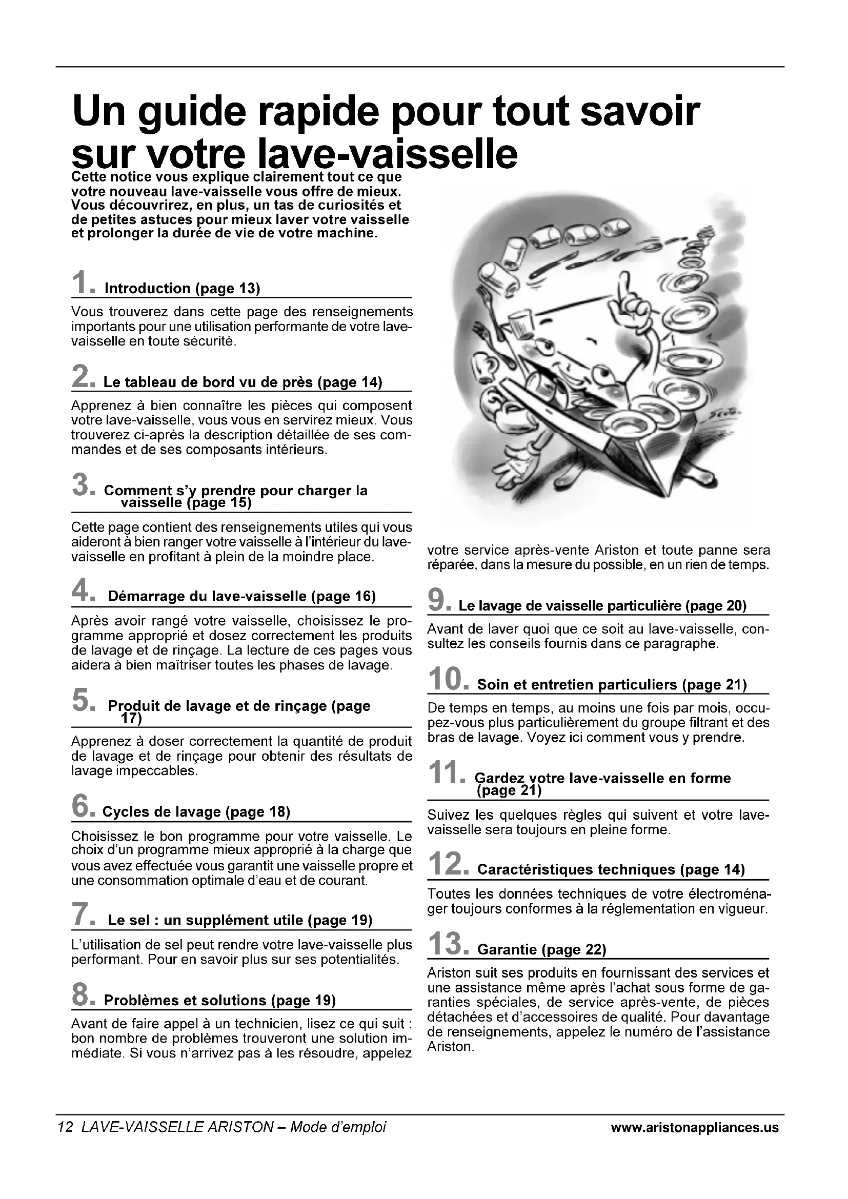 C12 LAVE-VAISSELLE ARISTON Mode demploi www.aristonappliances.us Un guide rapide pour tout savoir sur votre lave-vaisselle