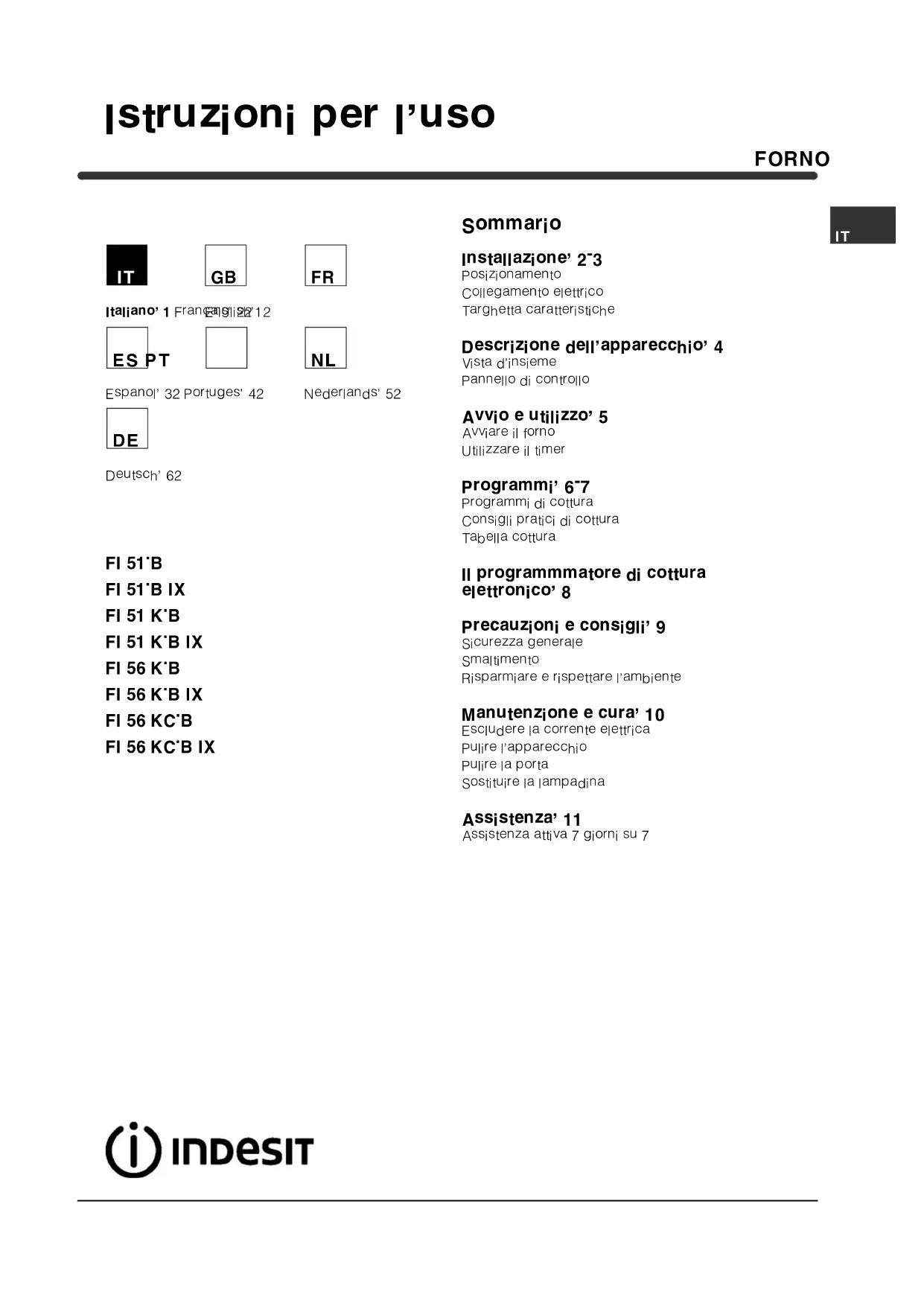 Retrouvez gratuitement la notice de l'appareil FI 51 B BK INDESIT au format PDF.