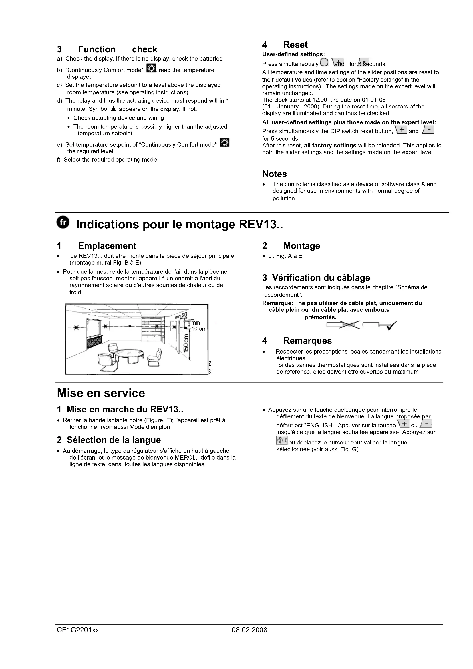 - Le REV13... doit être monté dans la pièce de séjour principale (montage mural Fig. B à E).