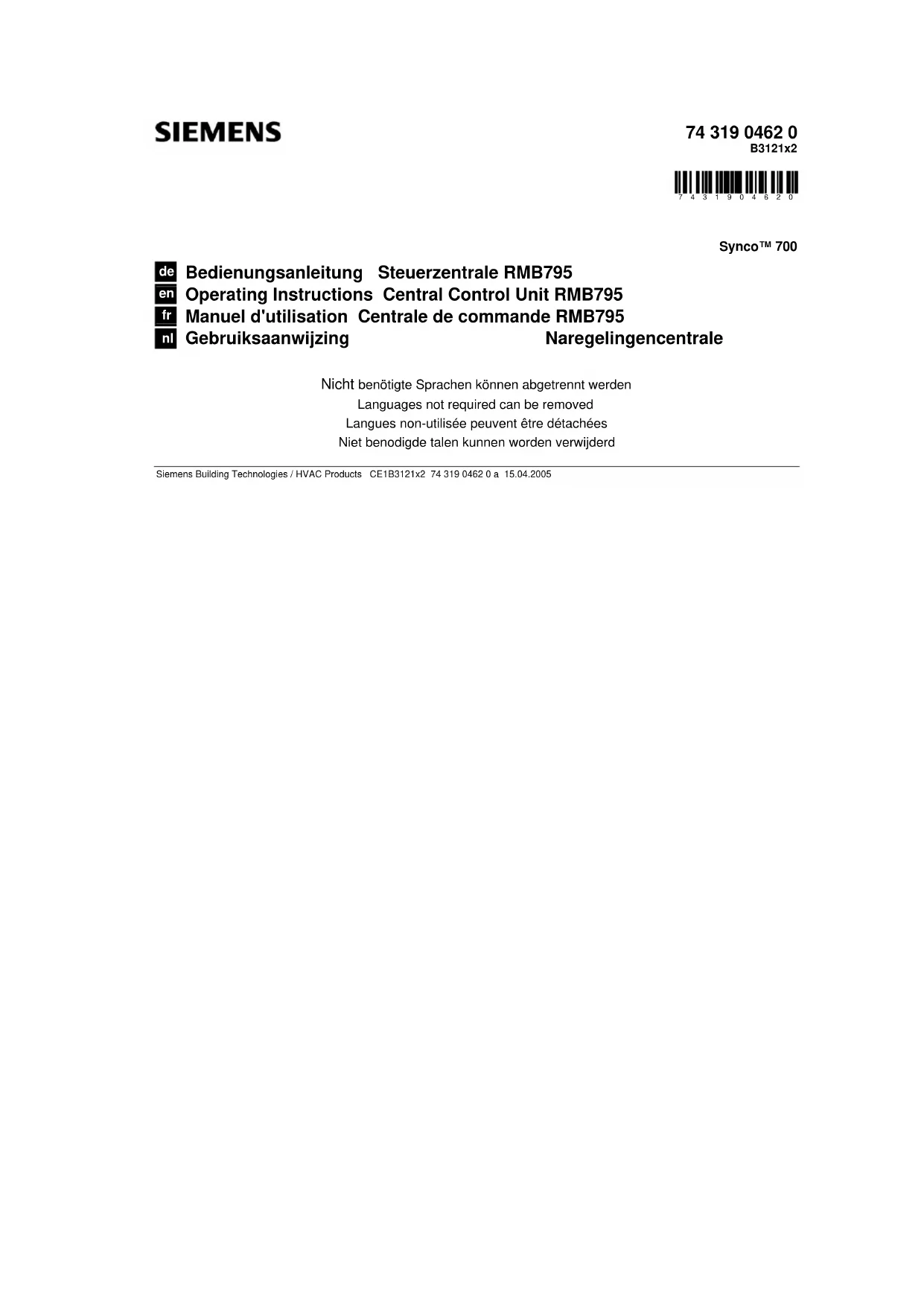 Retrouvez gratuitement la notice de l'appareil RMB795 SIEMENS au format PDF.