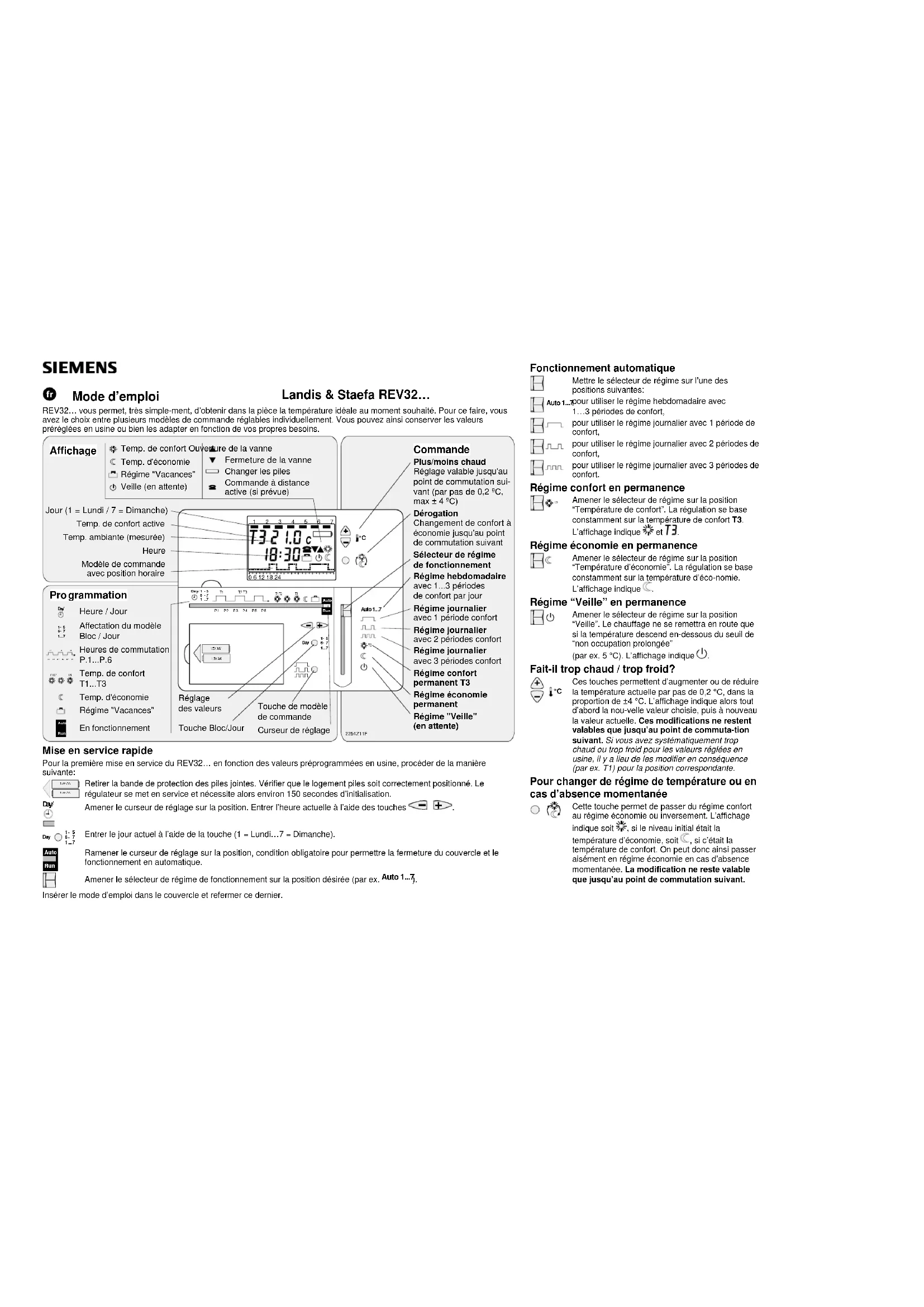 REV32 - Thermostat SIEMENS - Notice d'utilisation et mode d'emploi gratuit
