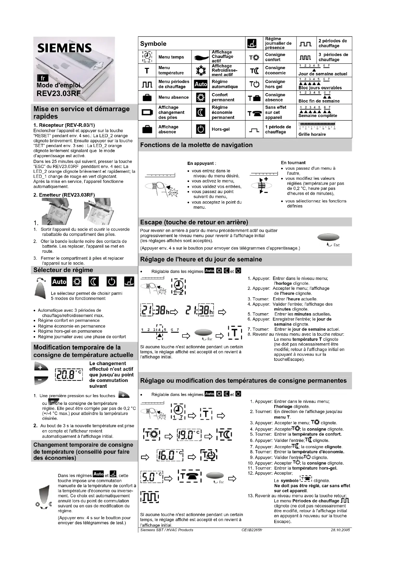 REV23.03RF - Thermostat SIEMENS - Notice d'utilisation et mode d'emploi gratuit