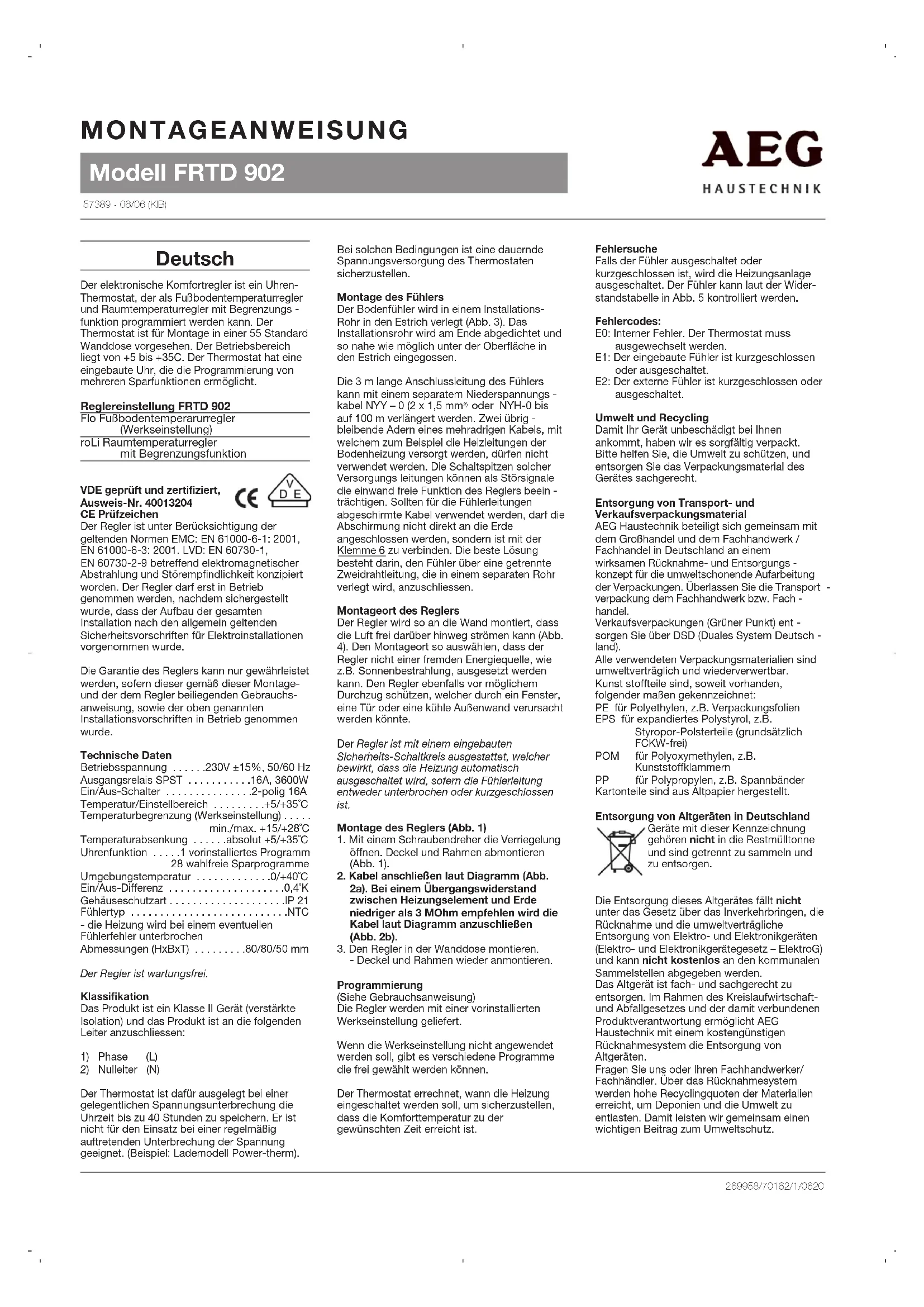 FRTD 902 - Thermostat AEG - Notice d'utilisation et mode d'emploi gratuit