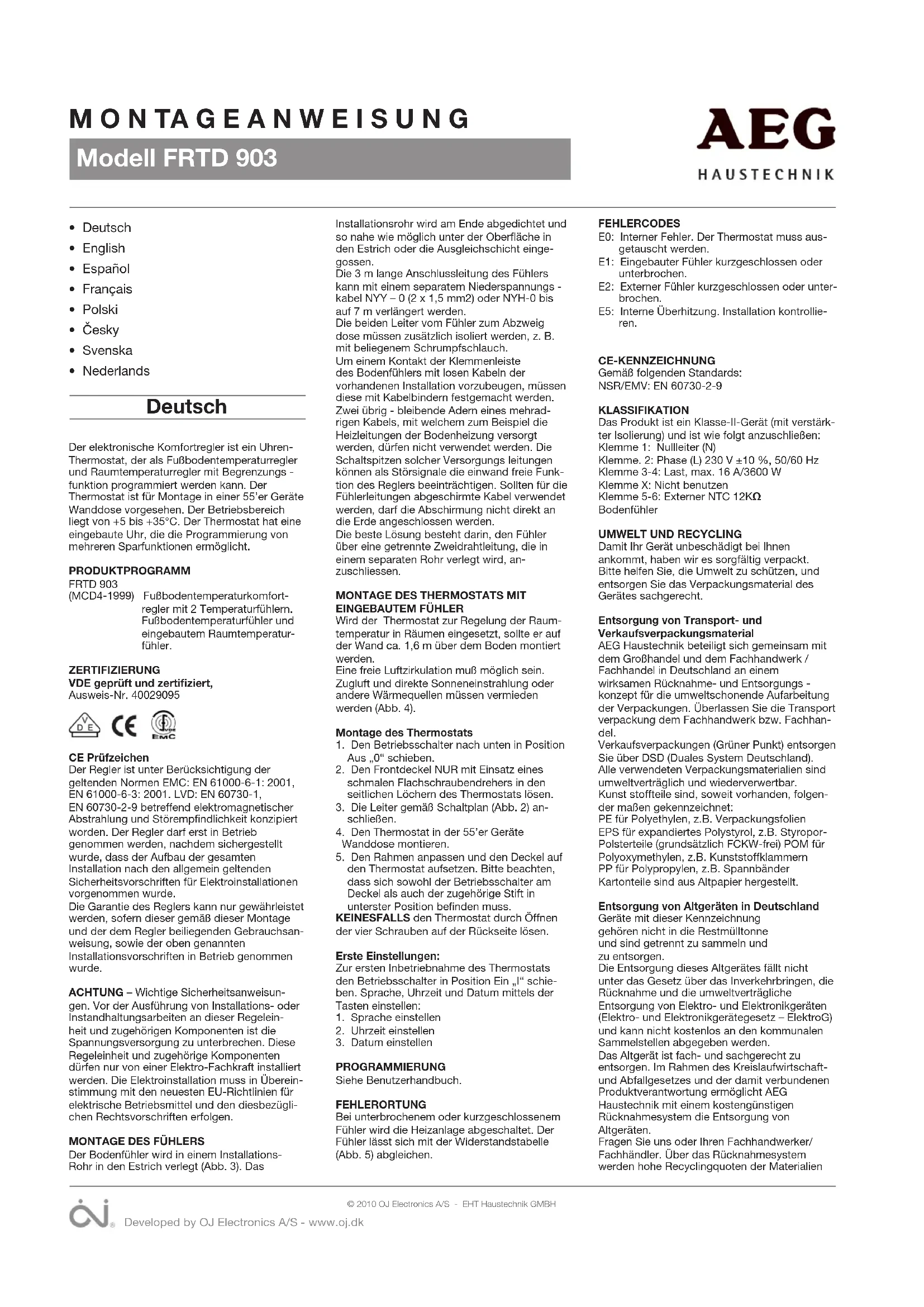 LVD/EMC: EN 60730-2-9