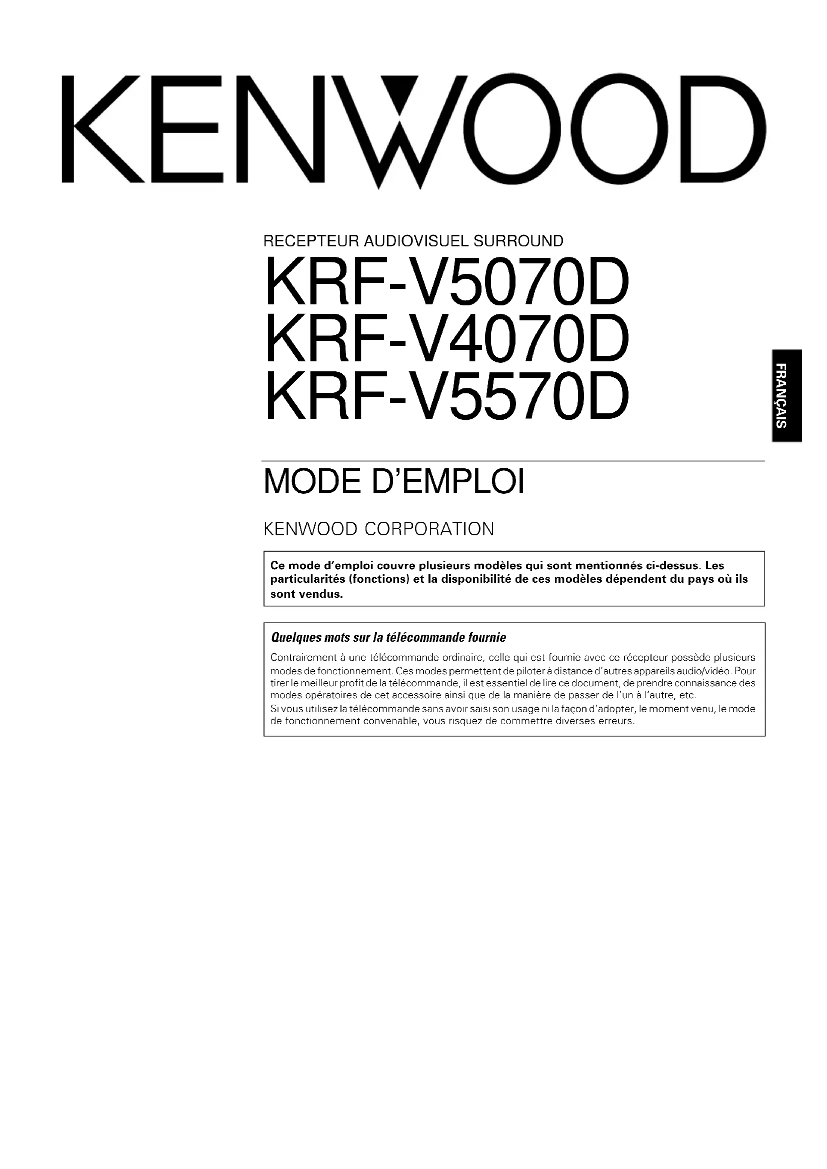 KRFV5570D - Récepteur audio-vidéo KENWOOD - Notice d'utilisation et mode d'emploi gratuit