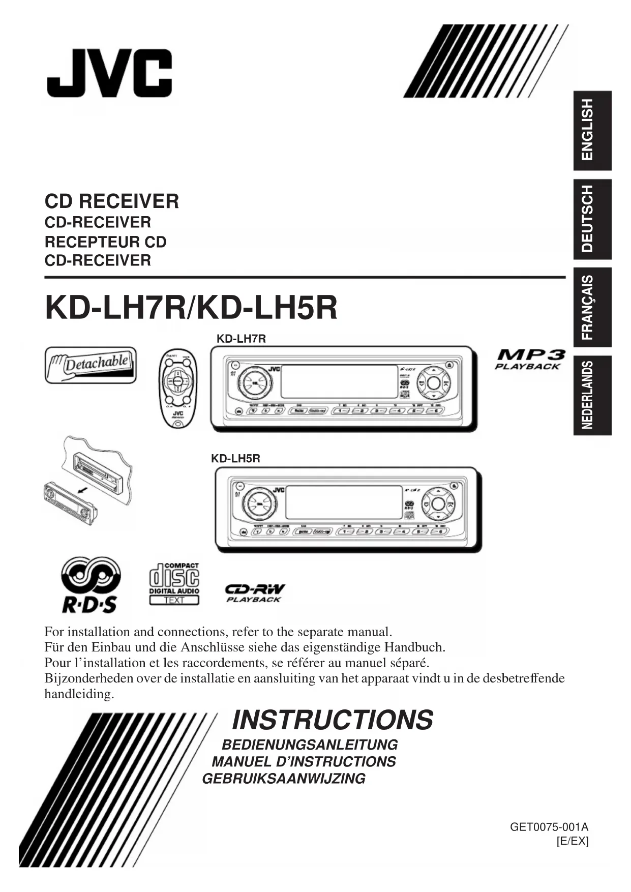 Téléchargez la notice de votre Autoradio au format PDF gratuitement ! Retrouvez votre notice KDLH5R - JVC et reprennez votre appareil électronique en main. Sur cette page sont publiés tous les documents nécessaires à l'utilisation de votre appareil KDLH5R de la marque JVC.