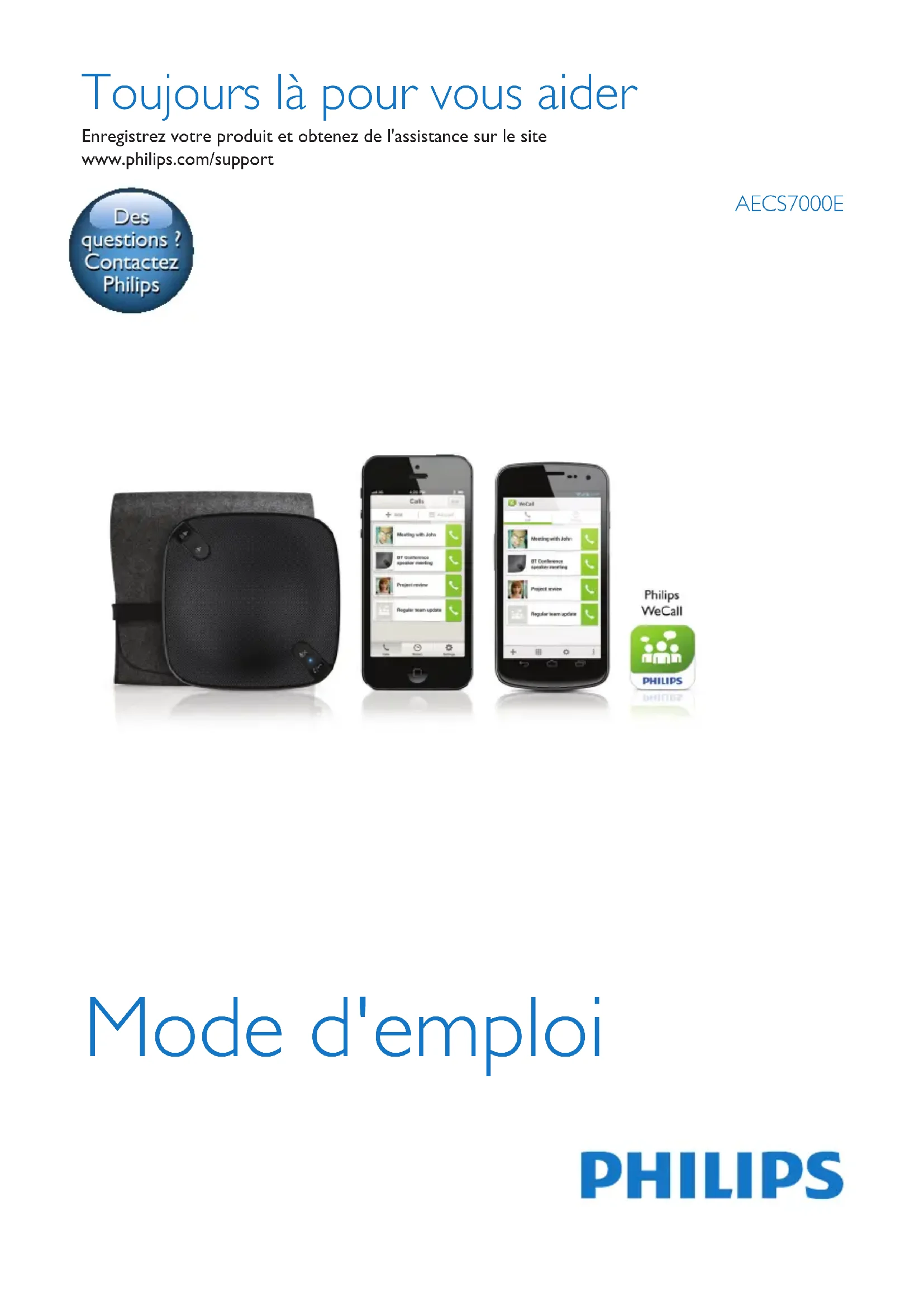 1 Assurez-vous que vous avez sélectionné la source USB sur le haut-parleur WeCall. 2 Passez un appel VoIP (par exemple un appel SkypeTM) sur votre PC/Mac. 3 Utilisez le haut-parleur WeCall comme haut-parleur de téléphone pendant l’appel.9FRUtilisation avec l’application WeCall (pour iPhone ou téléphone Android) 1 Téléchargez Philips WeCall sur votre iPhone ou téléphone Android.