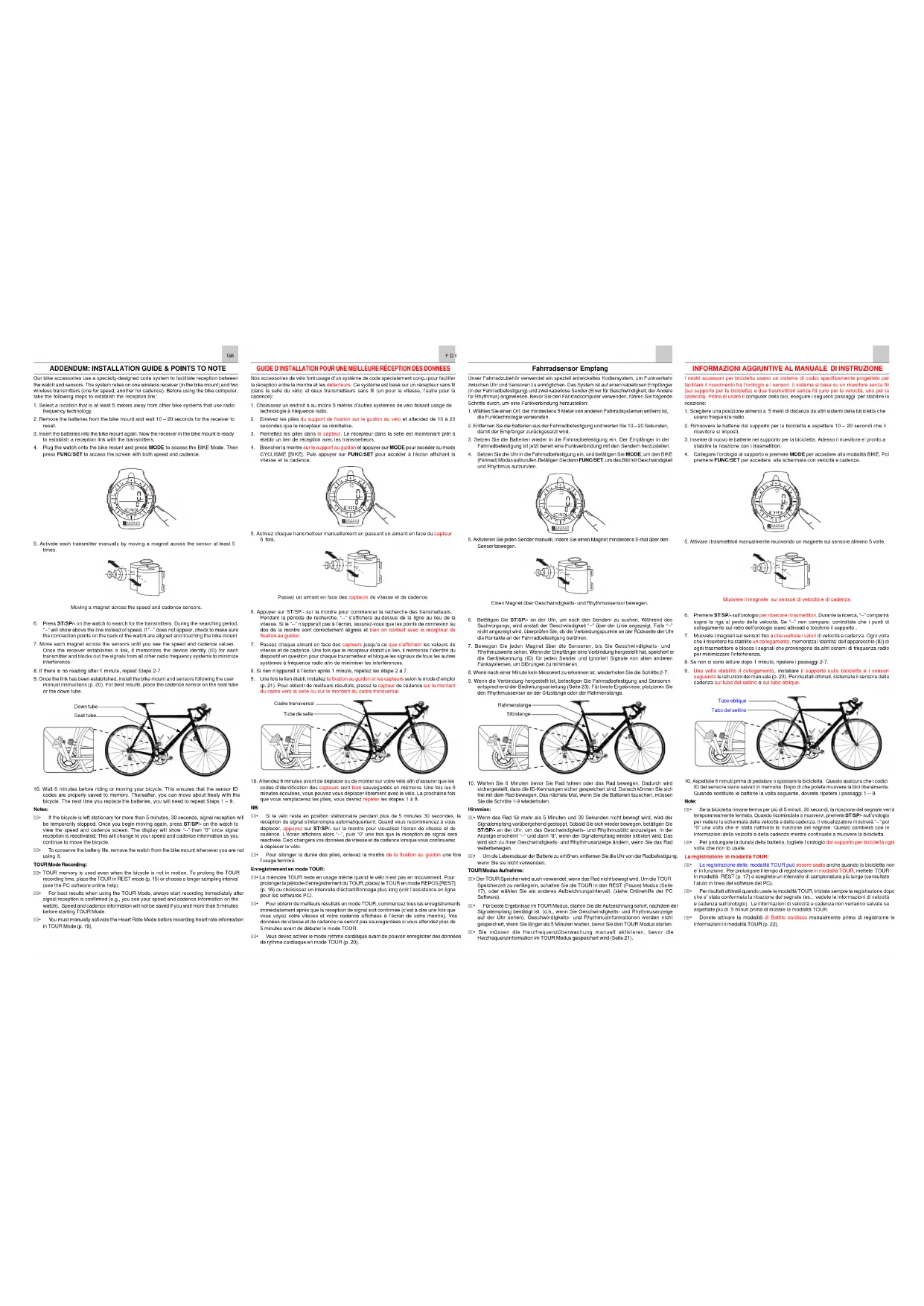 F D I GUIDE D’INSTALLATION POUR UNE MEILLEURE RÉCEPTION DES DONNEES Nos accessoires de vélo font usage d’un système de code spécialement conçu pour faciliter
