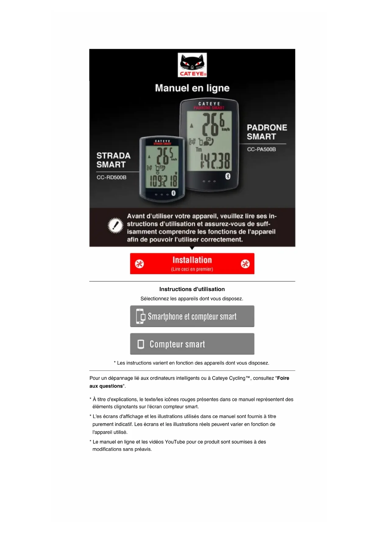 Strada Smart CCRD500B - Compteur CAT EYE - Notice d'utilisation et mode d'emploi gratuit