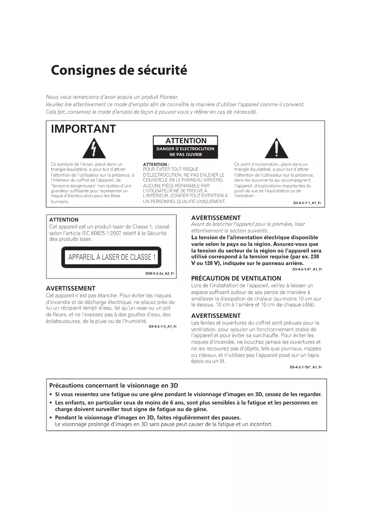 IMPORTANT D3-4-2-1-1_A1_FrATTENTIONCet appareil est un produit laser de Classe 1, classé selon l’article IEC 60825-1:2007 relatif à la Sécurité des produits laser.