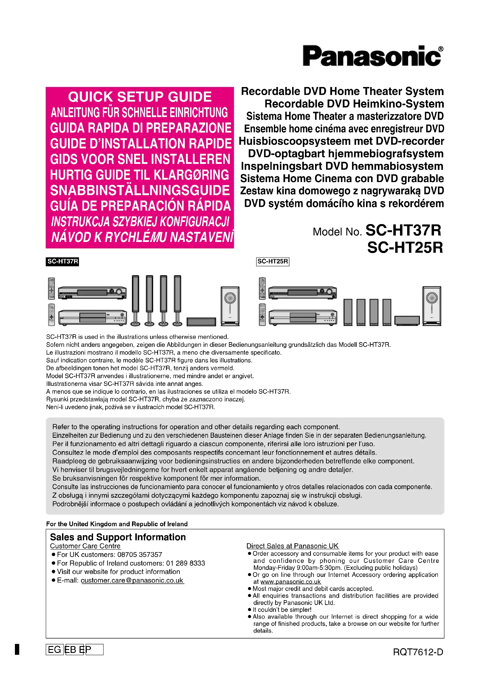 SCHT37R - Système home cinéma PANASONIC - Notice d'utilisation et mode d'emploi gratuit