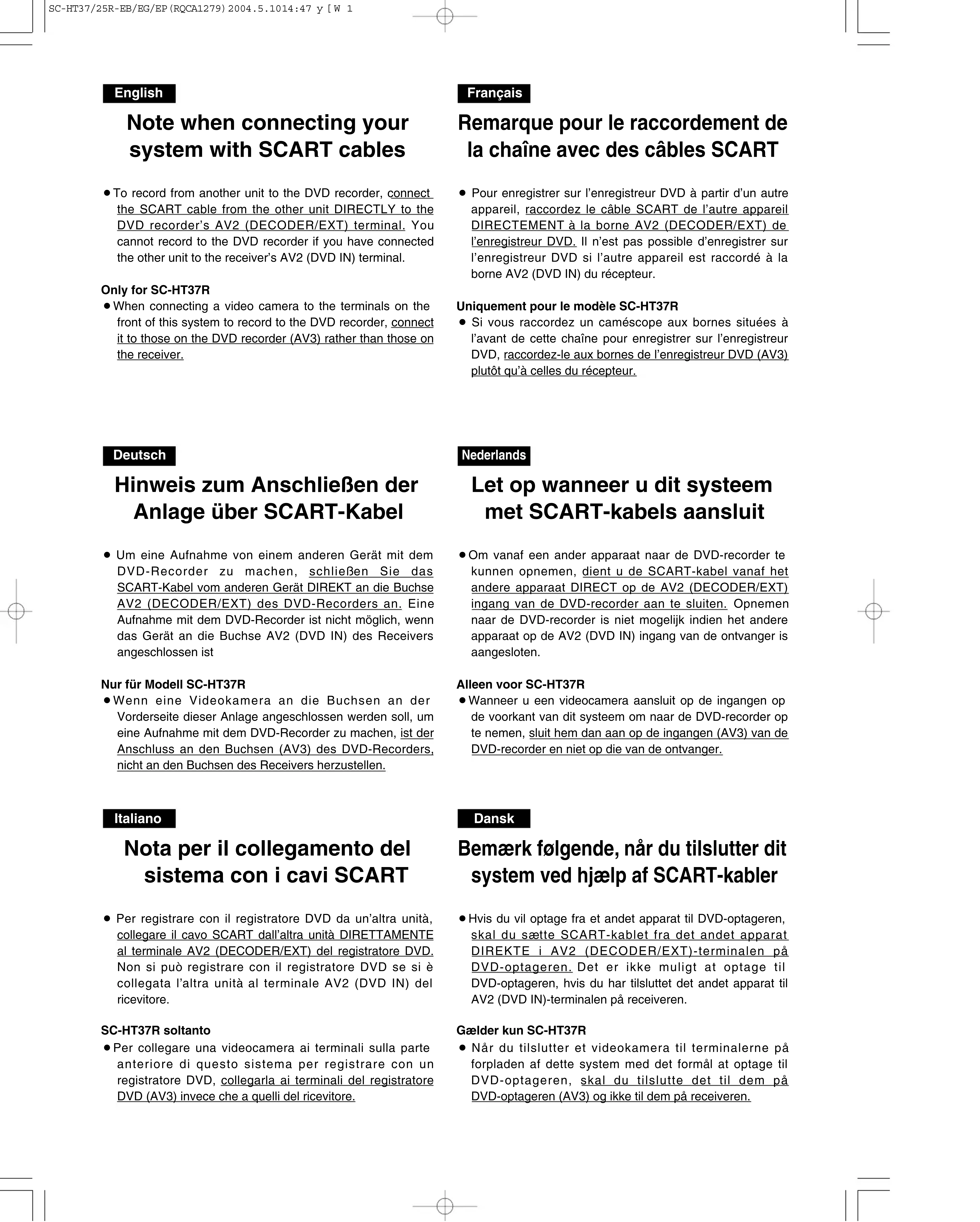 FOIRE AUX QUESTIONS - SCHT25R PANASONIC