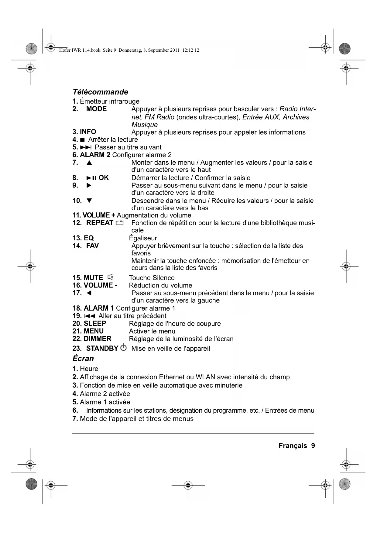 Hofer IWR 114.book Seite 23 Donnerstag, 8. September 2011 12:12 1224 Français