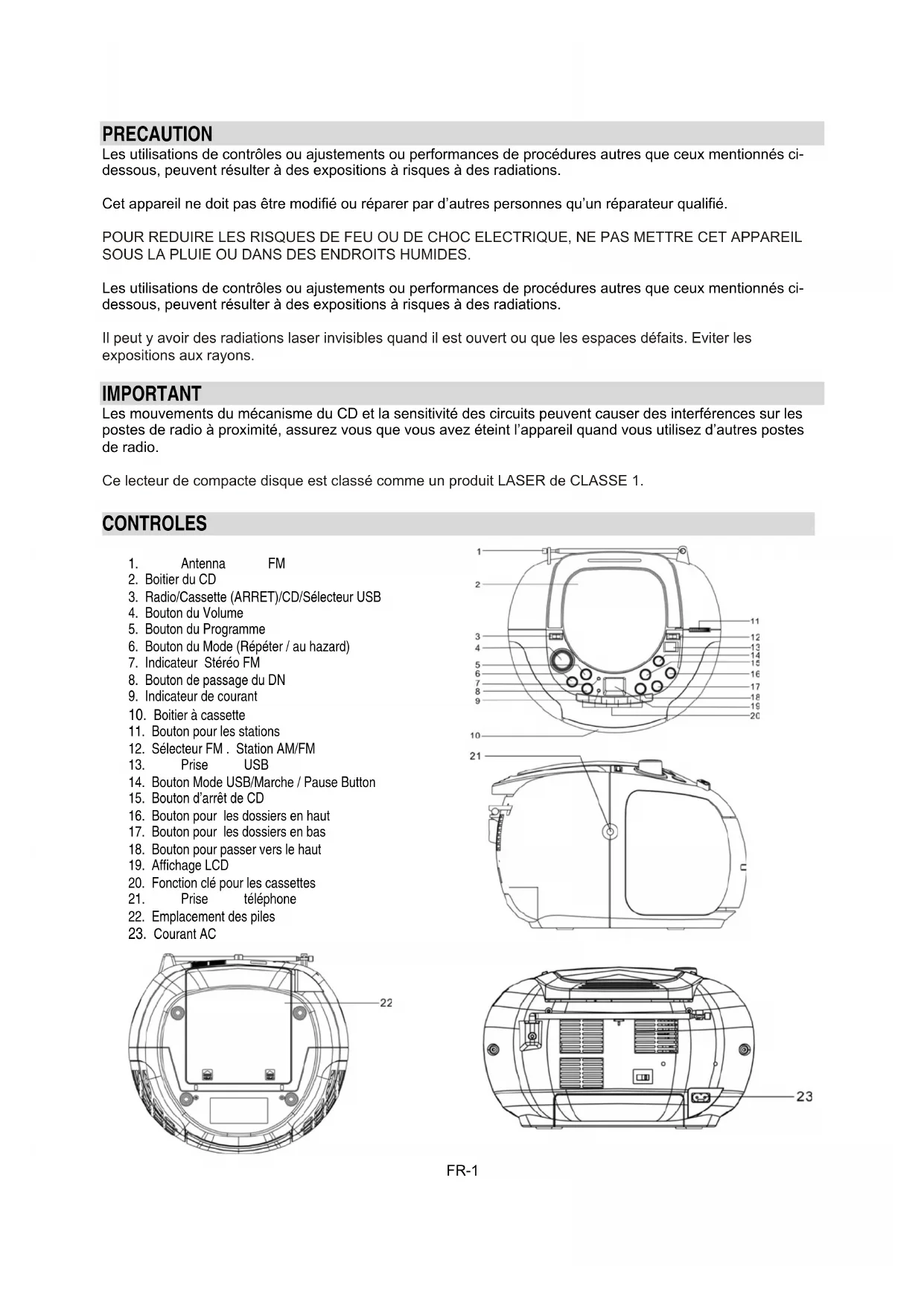 Ce lecteur de compacte disque est classé comme un produit LASER de CLASSE 1.