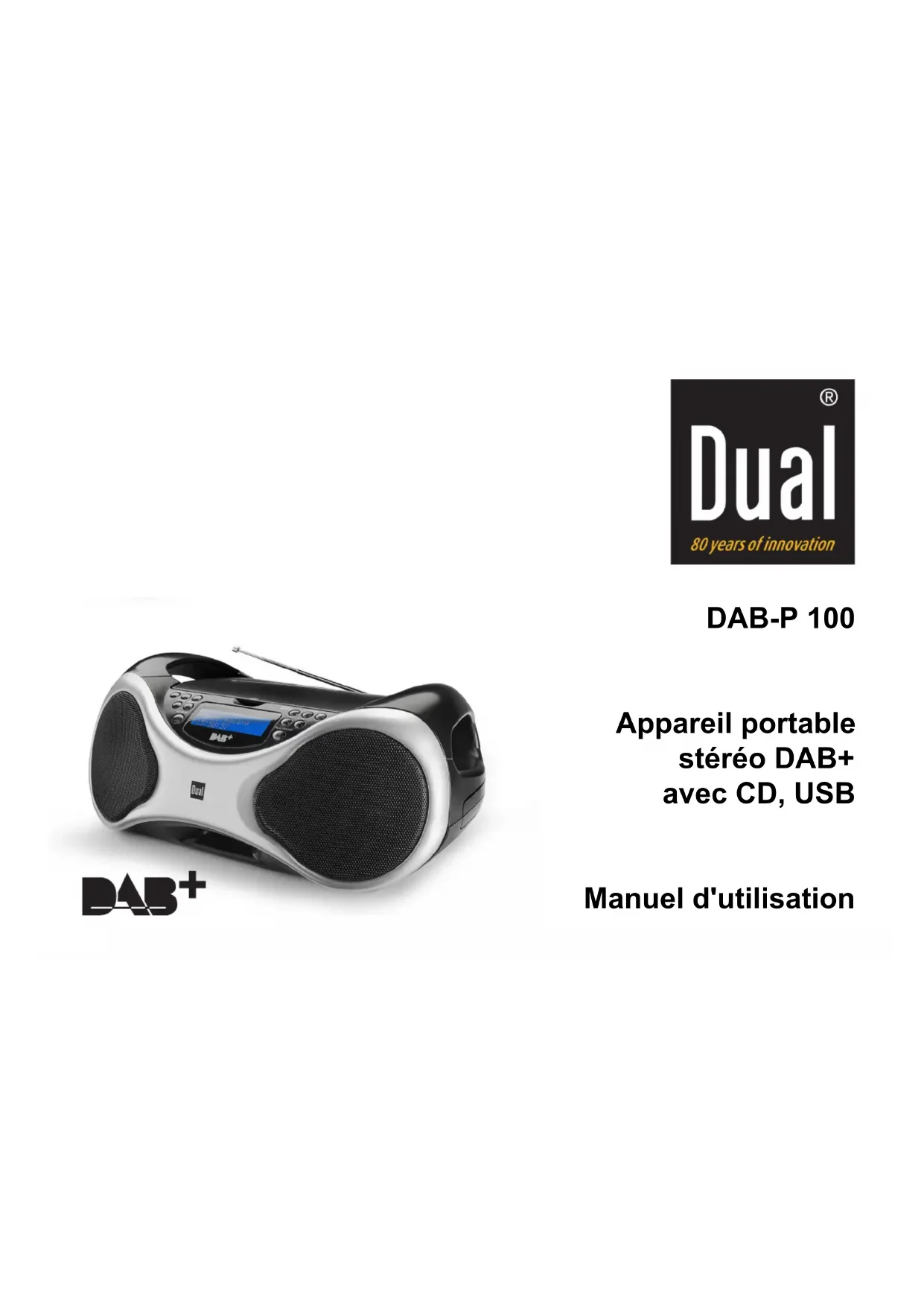 Retrouvez gratuitement la notice de l'appareil DABP100 DUAL au format PDF.