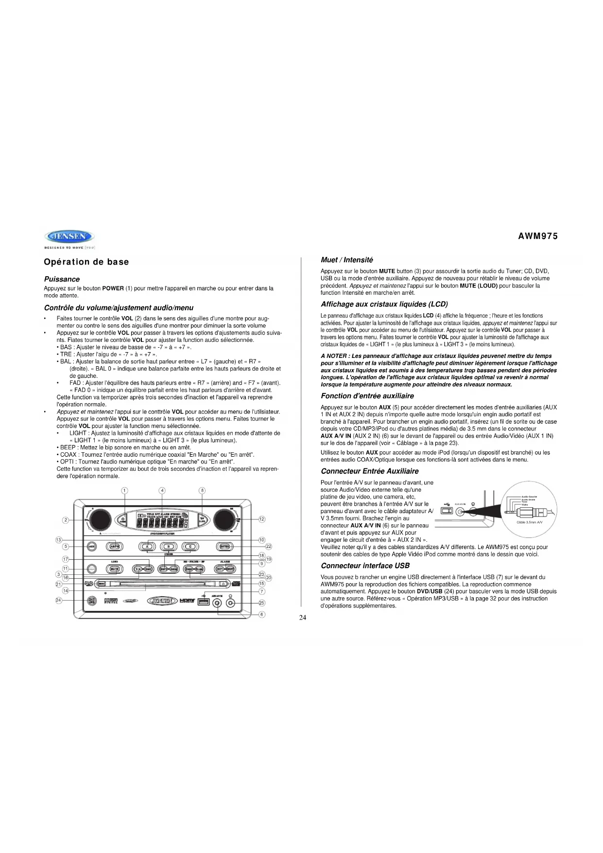 AWM975 - Radio JENSEN - Notice d'utilisation et mode d'emploi gratuit