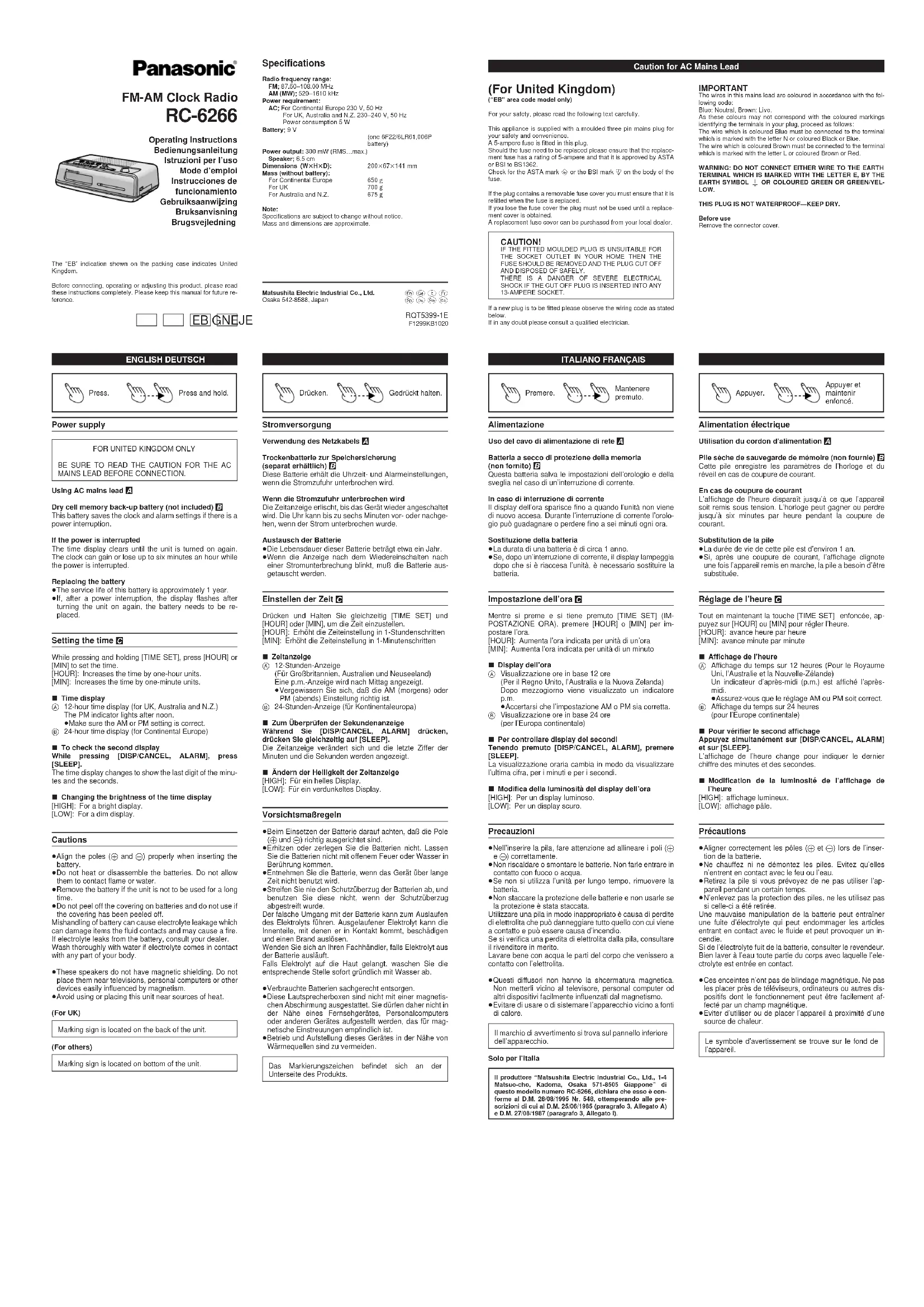 RC6266 - Radio-réveil PANASONIC - Notice d'utilisation et mode d'emploi gratuit