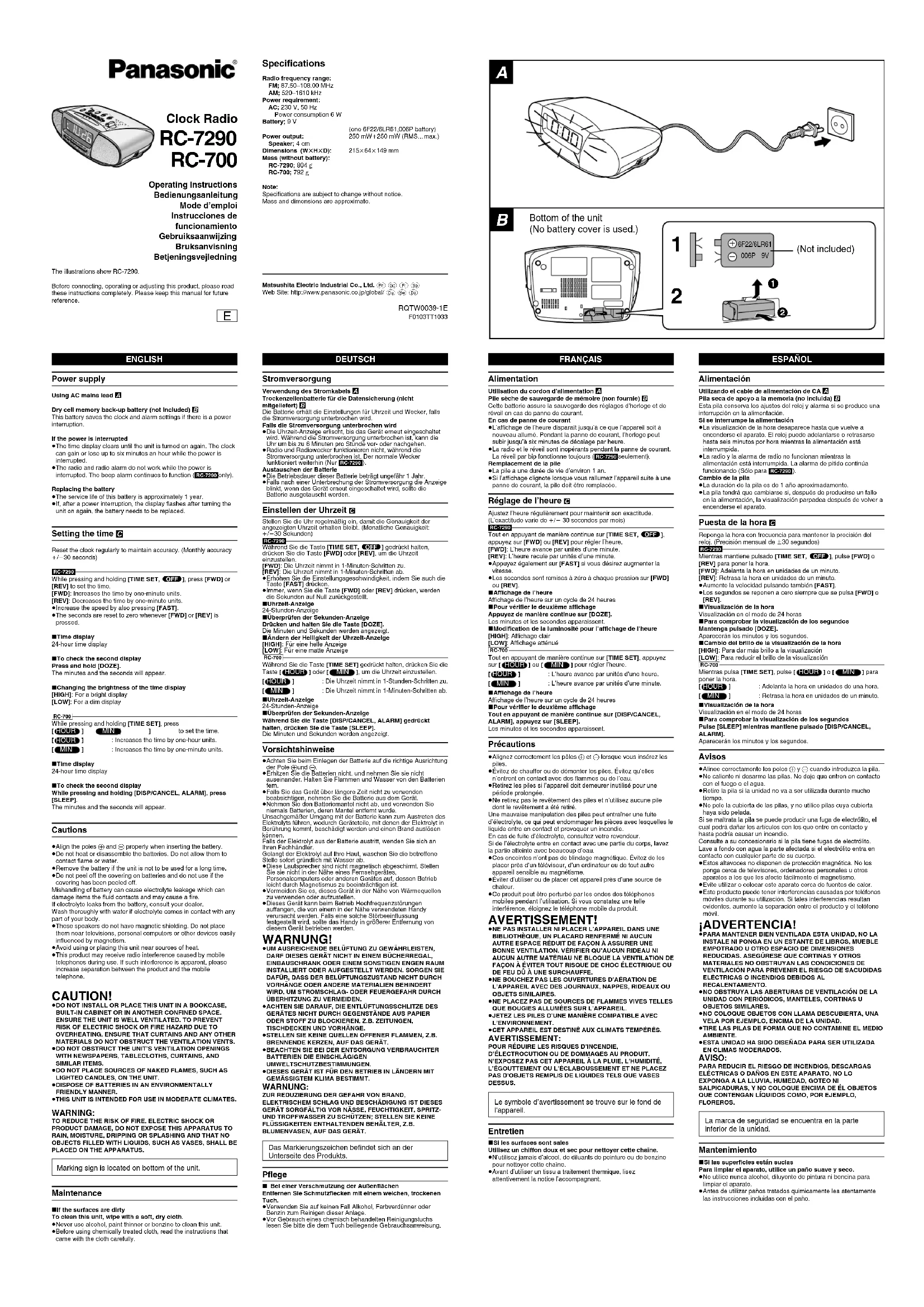 RC7290 - Radio-réveil PANASONIC - Notice d'utilisation et mode d'emploi gratuit