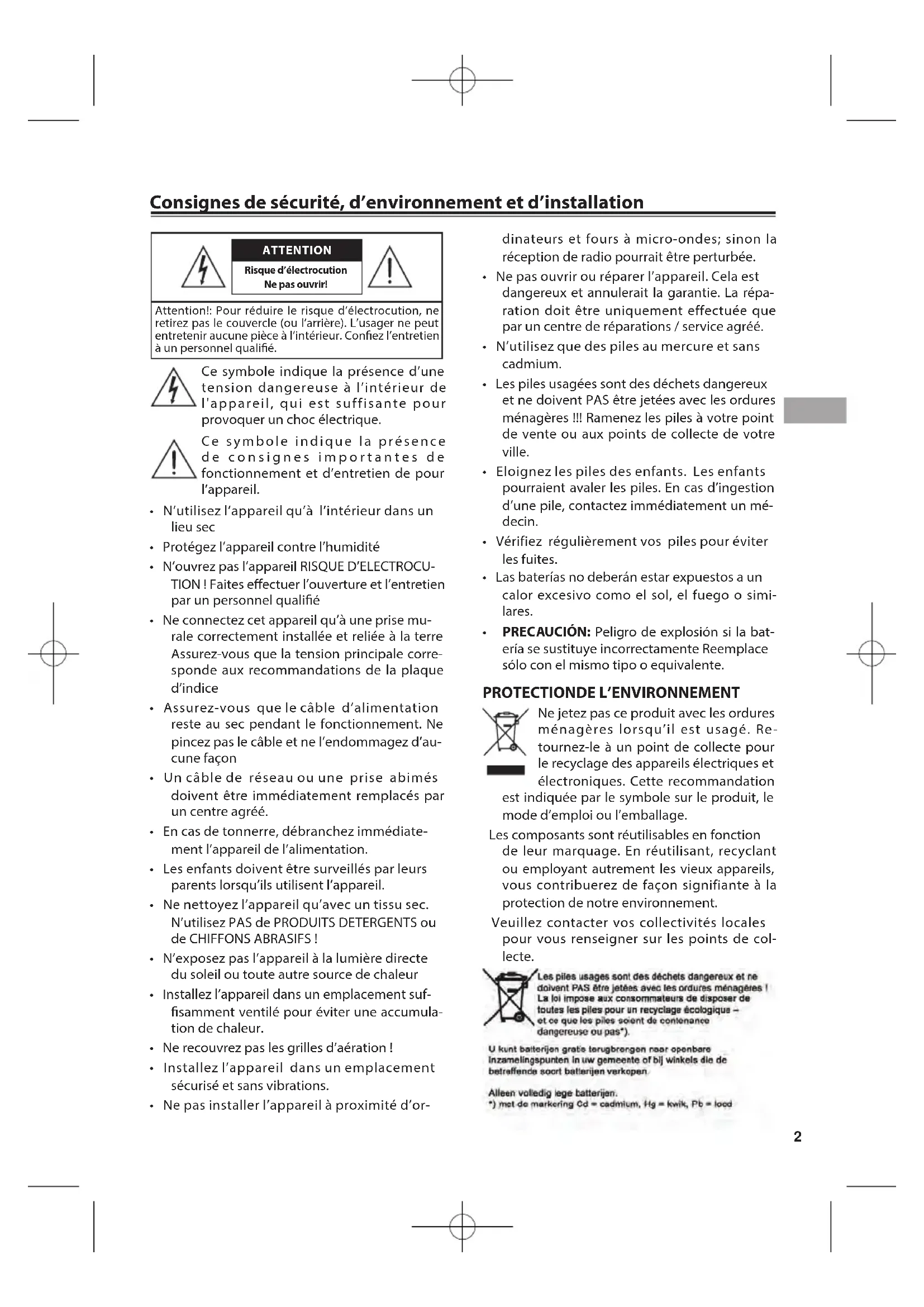 Consignes de sécurité, d'environnement et d'installation 2