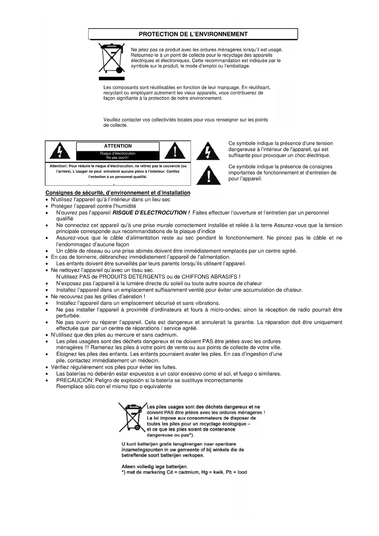 - Les piles usagées sont des déchets dangereux et ne doivent PAS être jetées avec les ordures menagères !!! Ramenez les piles à votre point de vente ou aux points de collecte de votre ville.