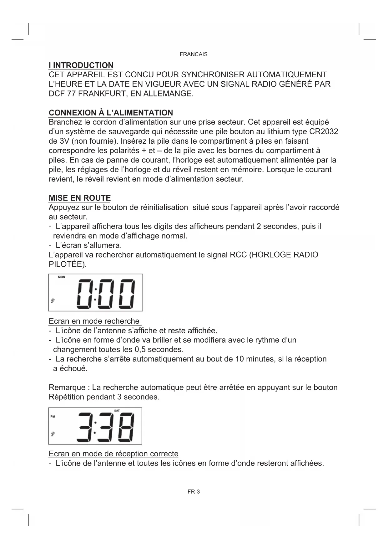 L'appareil va rechercher automatiquement le signal RCC (HORLOGE RADIO PILOTÉE).