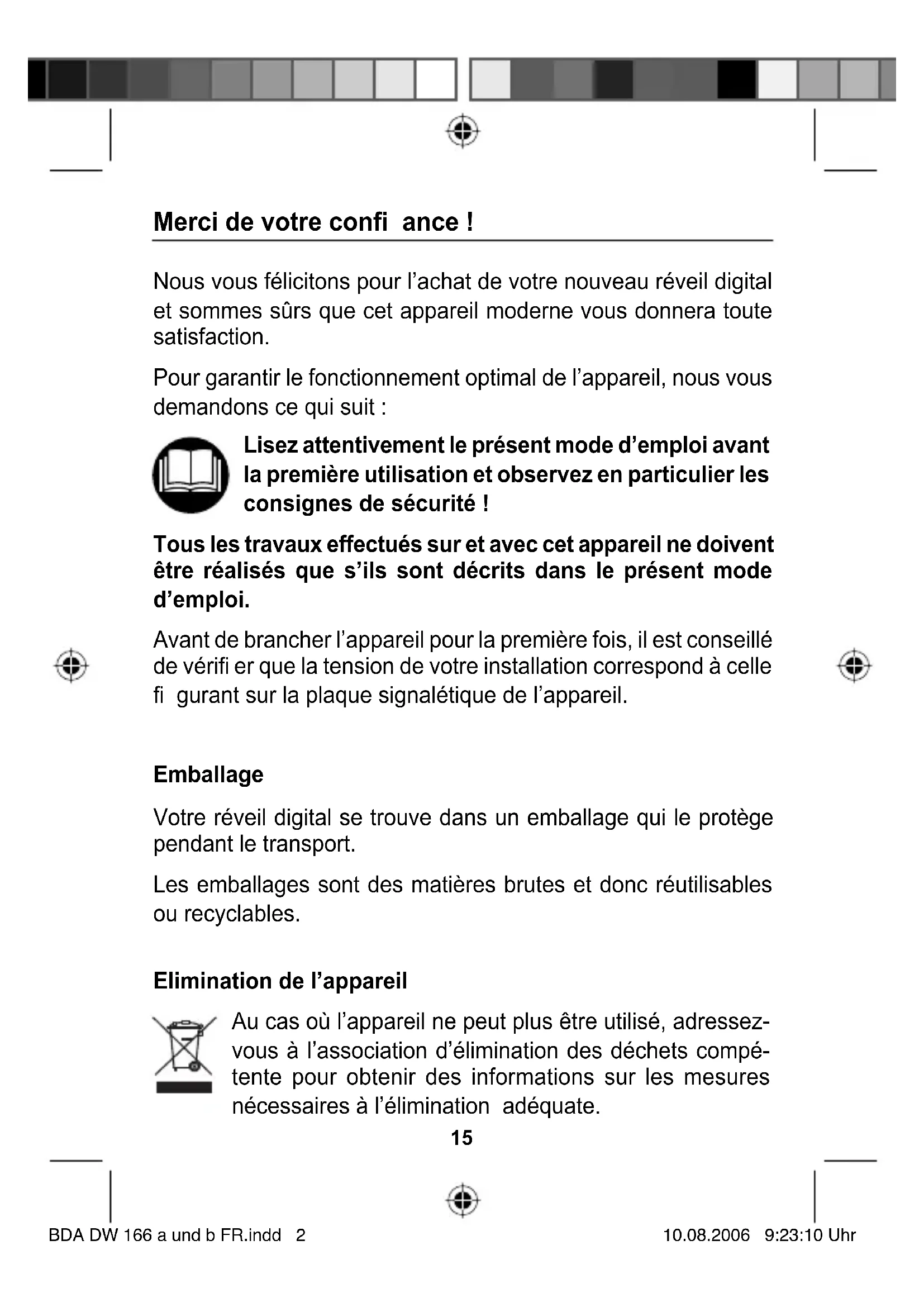 Votre réveil digital se trouve dans un emballage qui le protège pendant le transport.