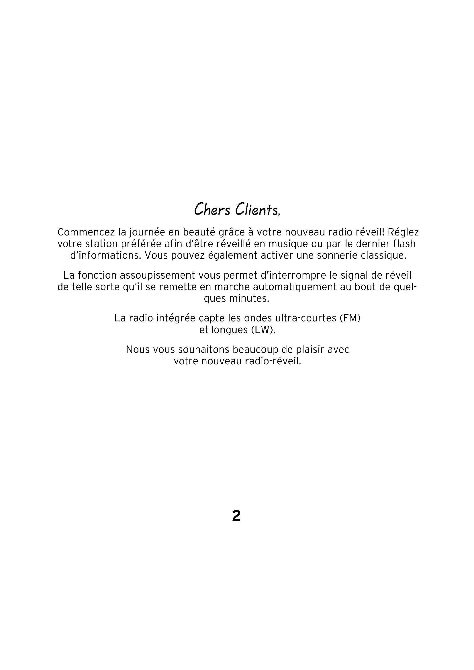 Nous vous souhaitons beaucoup de plaisir avec votre nouveau radio-réveil.